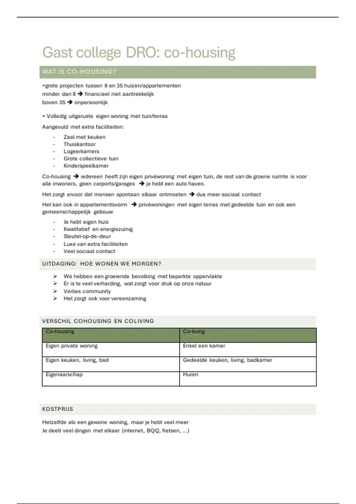 Co-housing ➔ iedereen heeft zijn eigen privéwoning met eigen tuin, de rest van de groene ruimte is voor