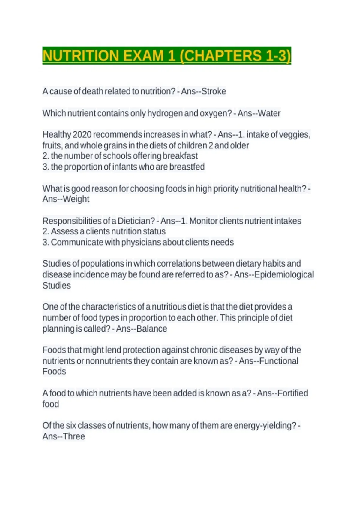 NUTRITION EXAM 1 (CHAPTERS 1-3)