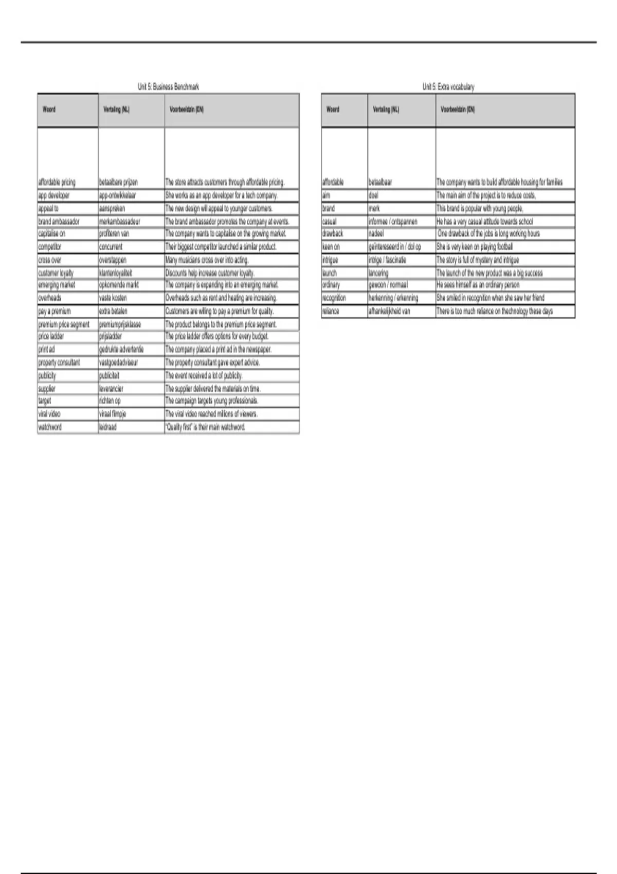 Woord Vertaling (NL) Voorbeeldzin (EN) Woord Vertaling (NL) Voorbeeldzin (EN)