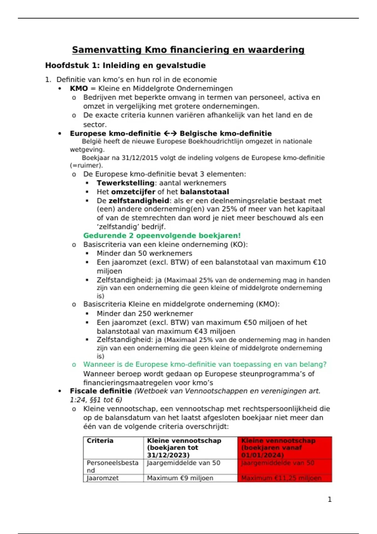 samenvatting kmo financiering en waardering met als extra een begrippenlijst
