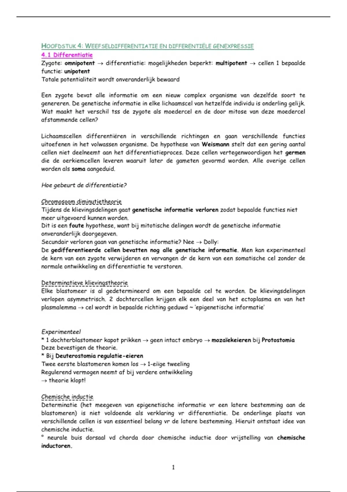 HOOFDSTUK 4: WEEFSELDIFFERENTIATIE EN DIFFERENTIËLE GENEXPRESSIE