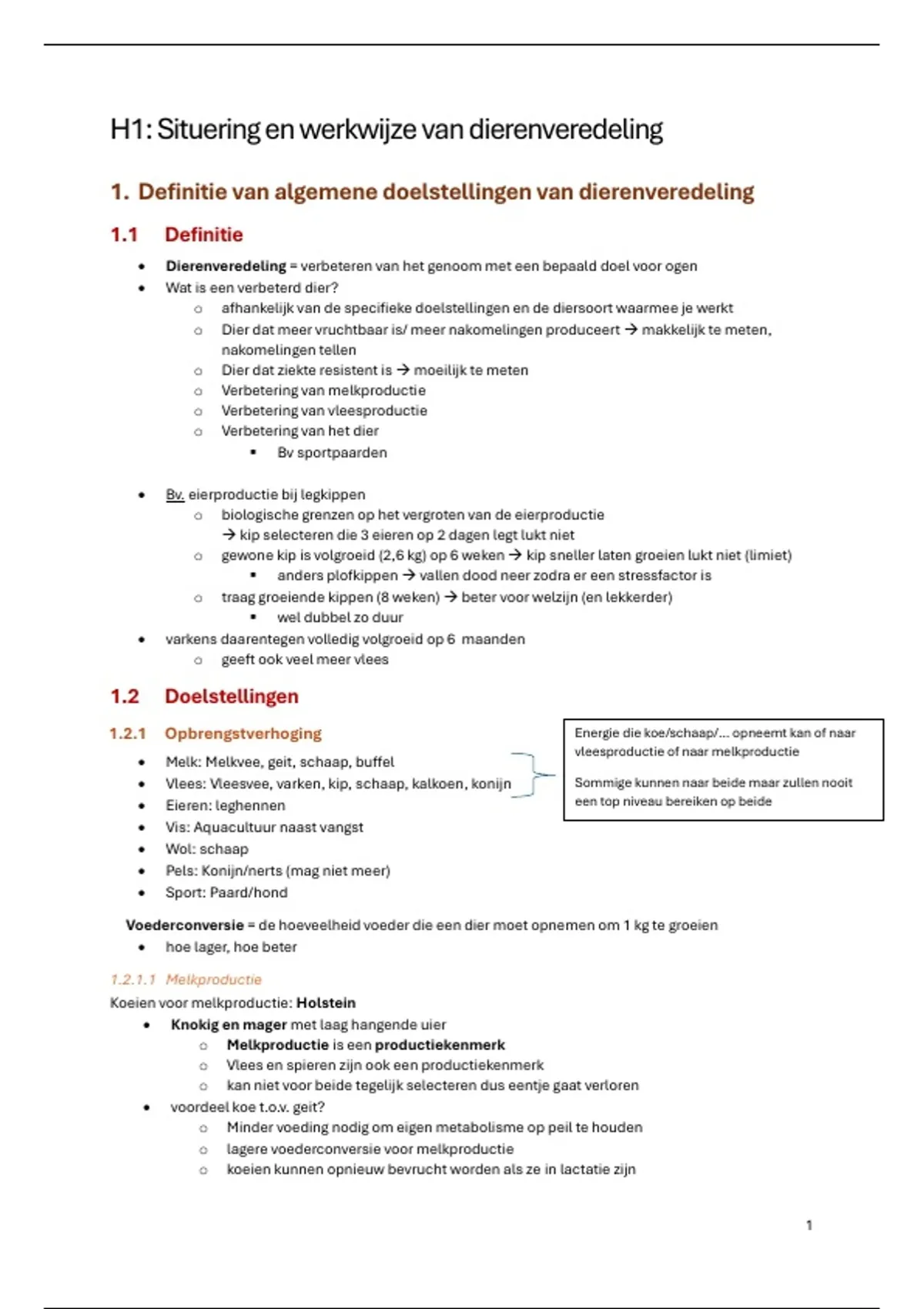 1. Definitie van algemene doelstellingen van dierenveredeling