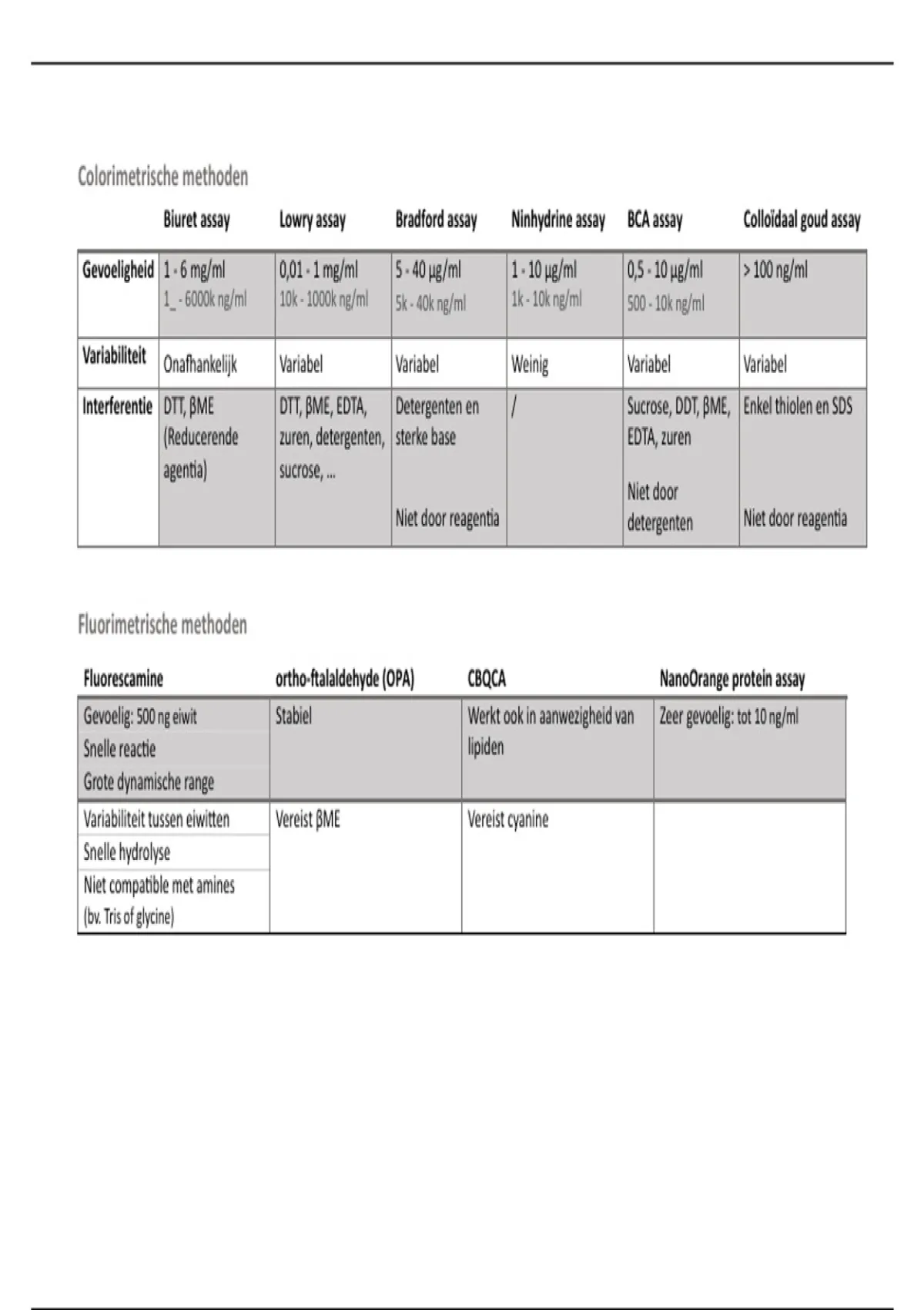 Biuret assay Lowry assay Bradford assay Ninhydrine assay BCA assay Colloïdaal goud assay