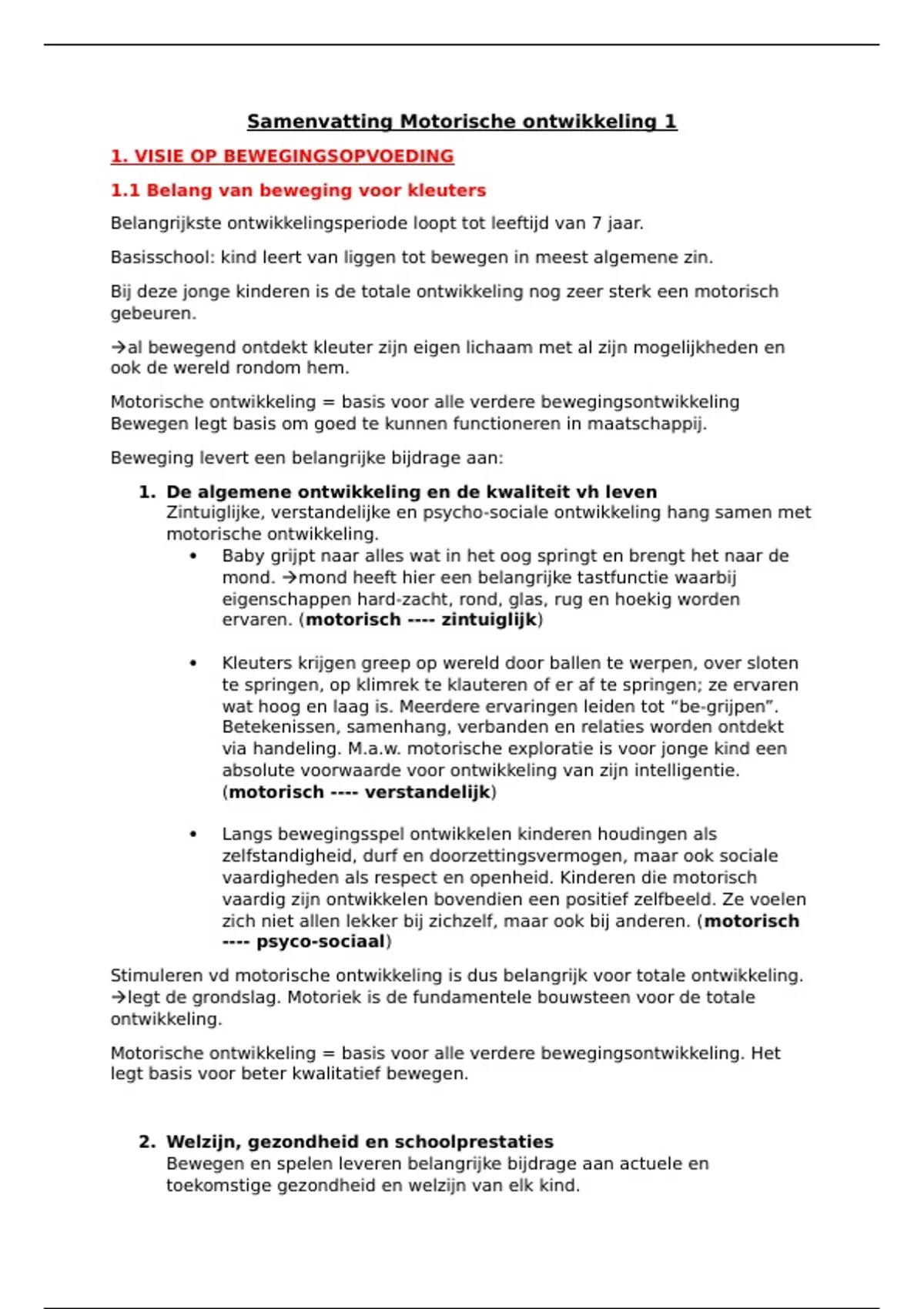Dit is een samenvatting van het vak "Motorische ontwikkeling1" dat gegeven wordt in het 1e jaar kleuteronderwijs aan Thomas More Hogeschool.