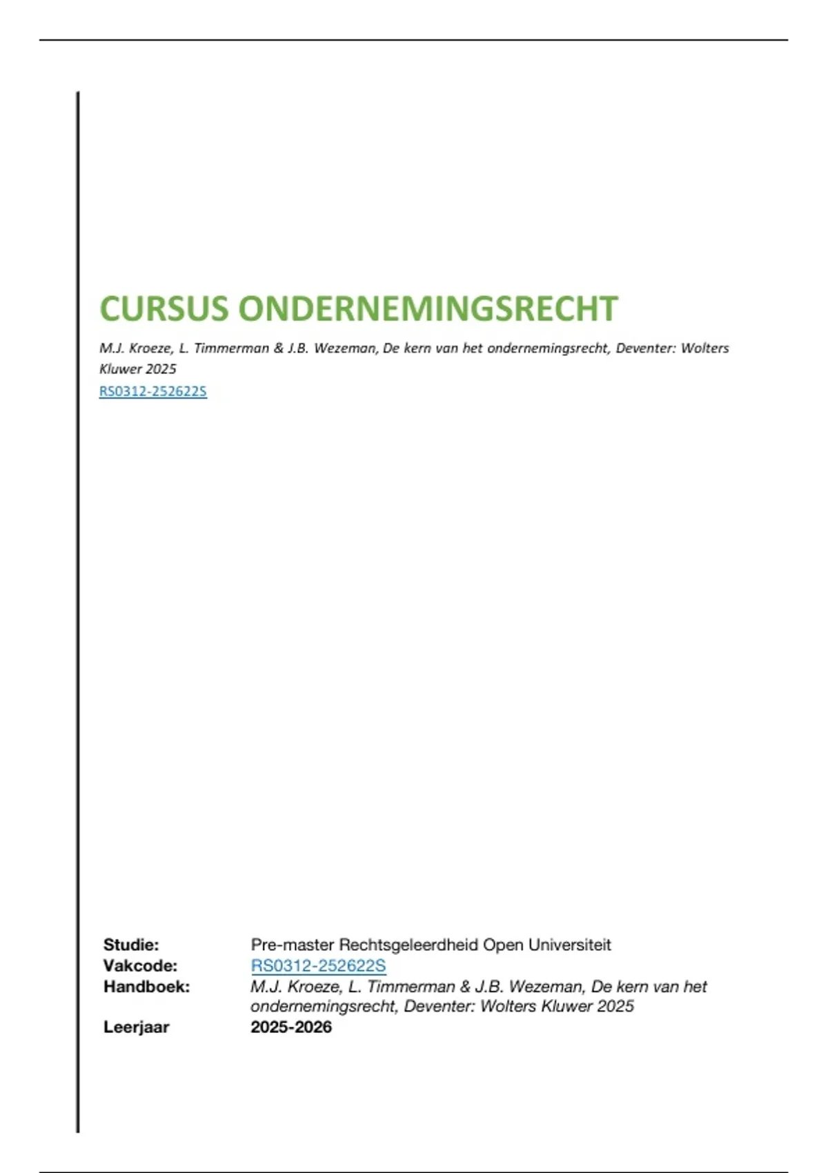 M.J. Kroeze, L. Timmerman & J.B. Wezeman, De kern van het ondernemingsrecht, Deventer: Wolters