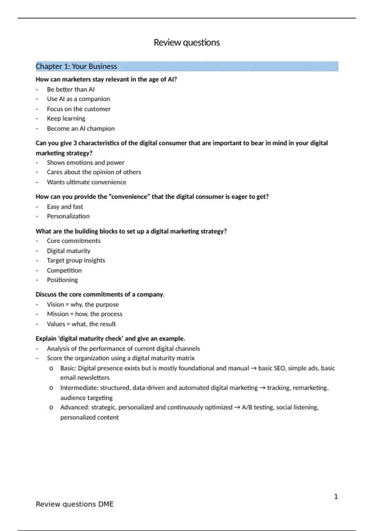 Summary Review questions - Digital Marketing Essentials (MBK25a)
