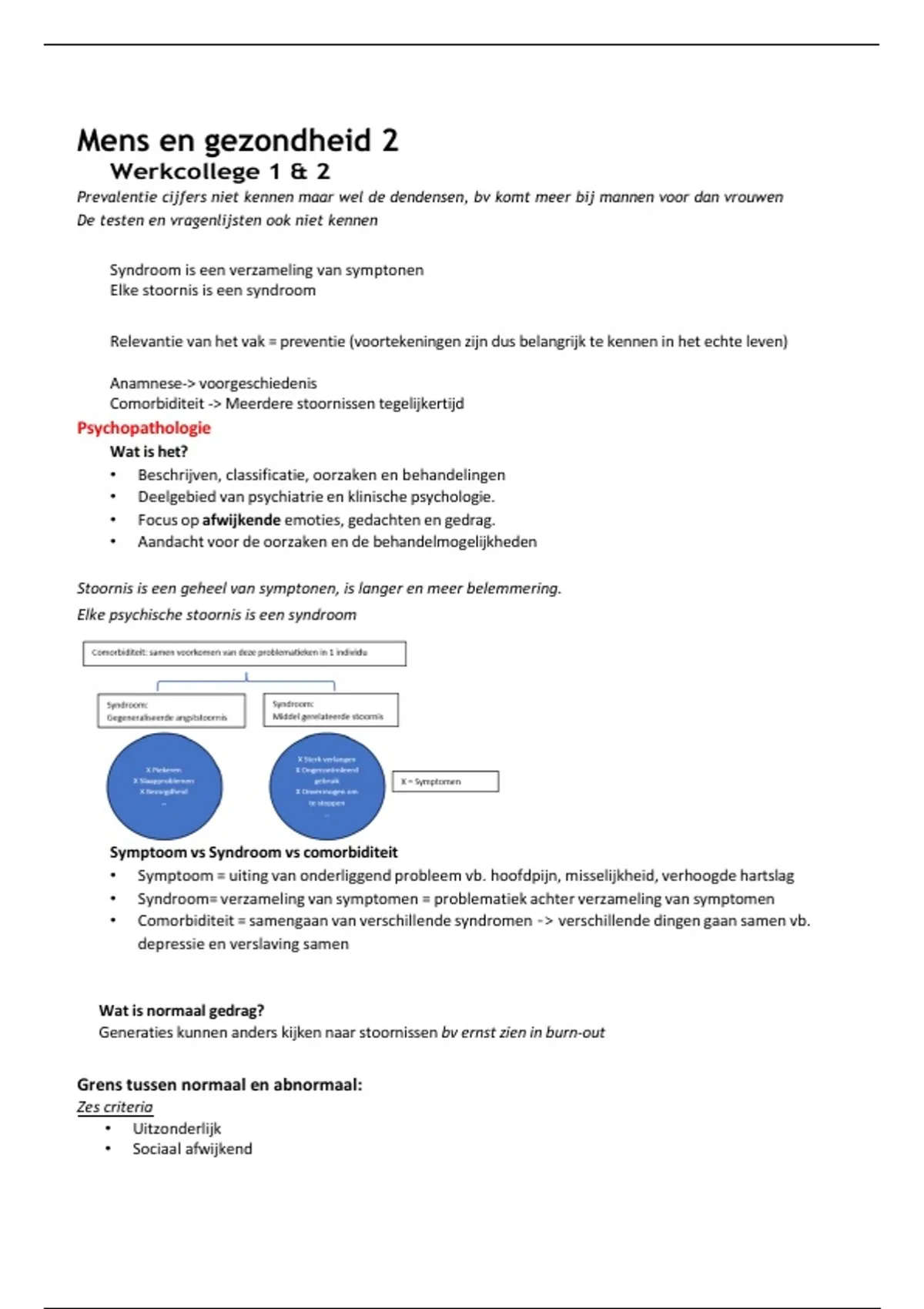 • Comorbiditeit = samengaan van verschillende syndromen -> verschillende dingen gaan samen vb.