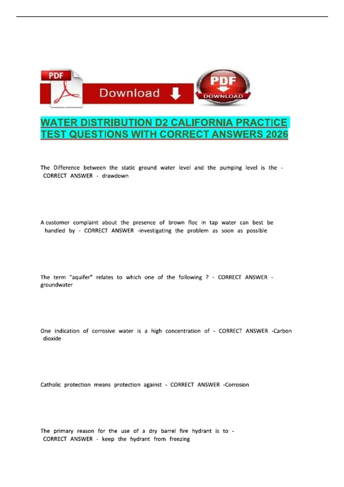 WATER DISTRIBUTION D2 CALIFORNIA PRACTI...UESTIONS WITH CORRECT ANSWERS