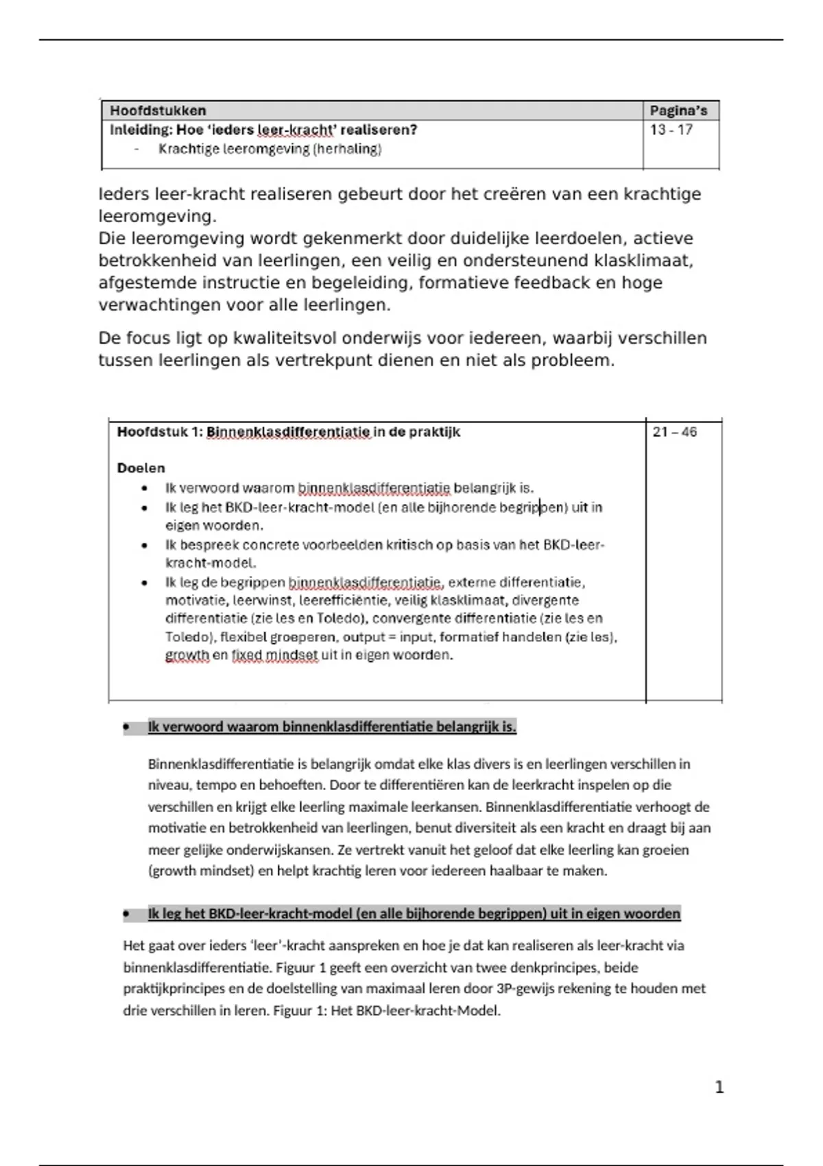 verschillen en krijgt elke leerling maximale leerkansen. Binnenklasdifferentiatie verhoogt de