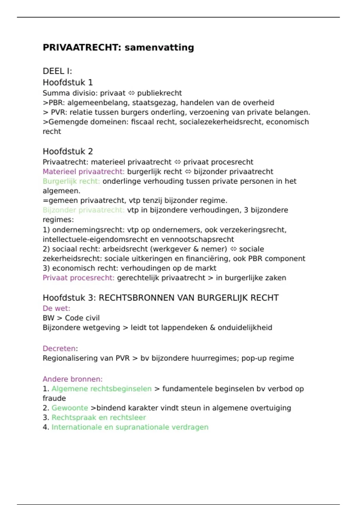 Een samenvatting van het gedeelte privaatrecht van het vak bronnen en beginselen. Gemaakt aan de hand van het handboek.
