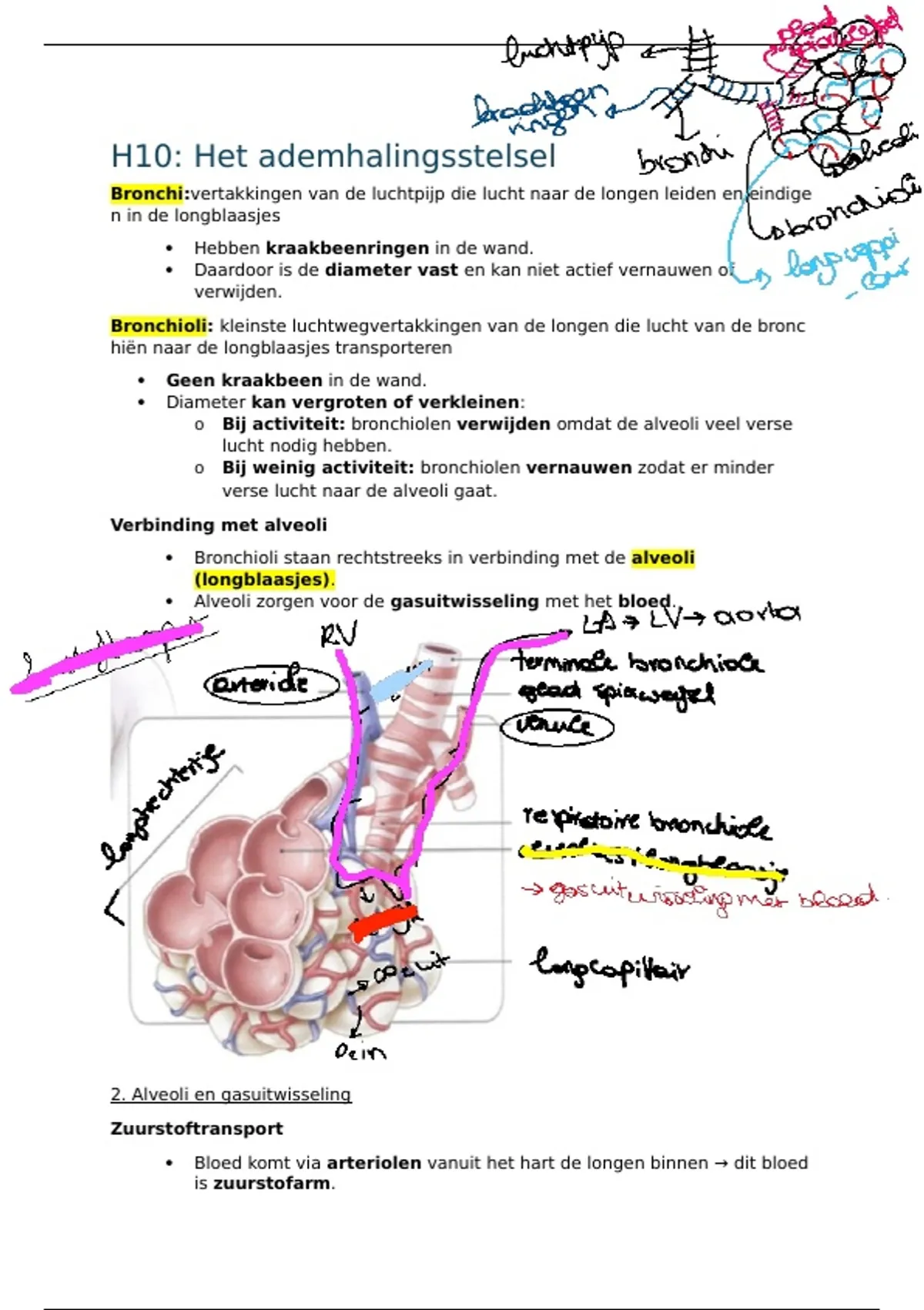 2. Alveoli en gasuitwisseling