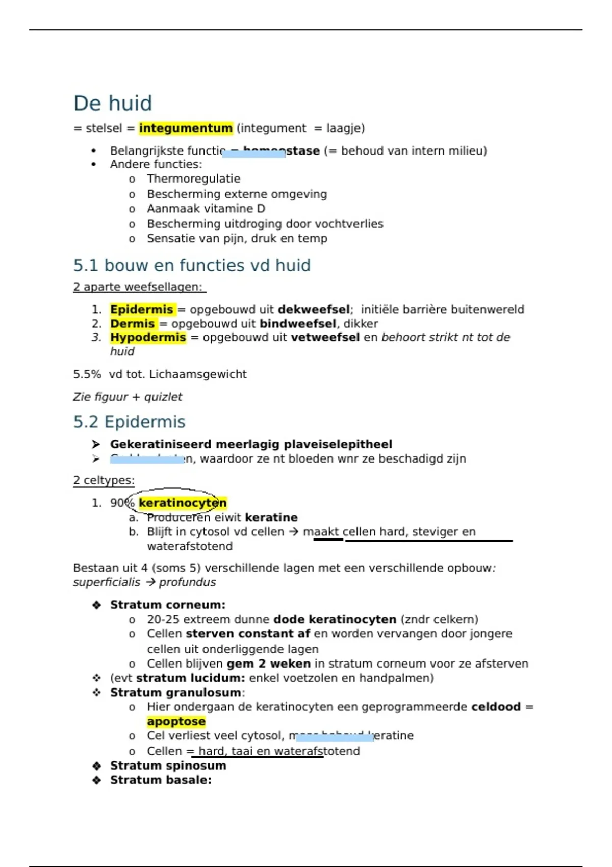 1. Epidermis = opgebouwd uit dekweefsel; initiële barrière buitenwereld