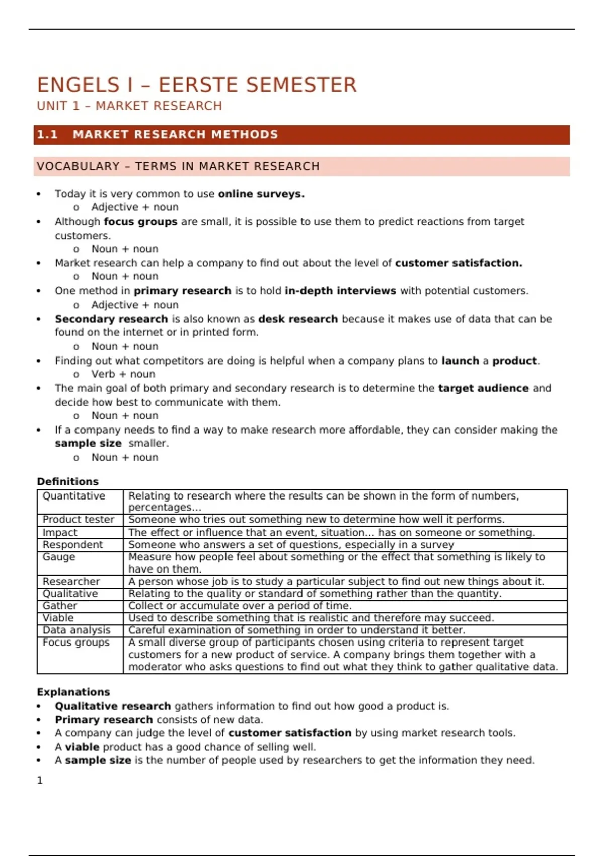 UNIT 1 – MARKET RESEARCH
