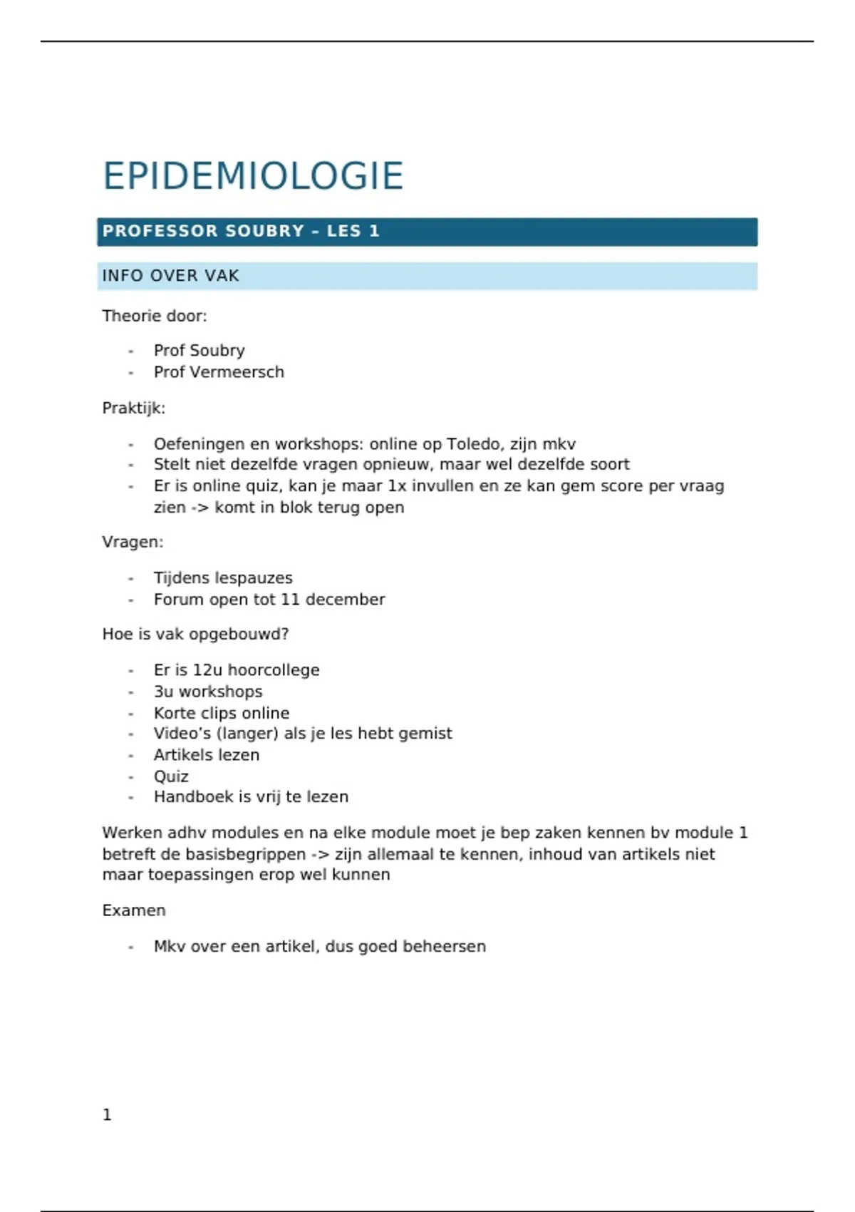 Dit document bevat de lesnota's van alle lessen van beide proffen, inclusief belangrijke figuren en grafieken, voorzien van duidelijke voorbeelden. Verder is het aangevuld met notities uit online videolessen en voorbeeldvragen die in de les besproken werden. De online quizzes op Toledo zijn niet ingevoegd wegens plagiaat.