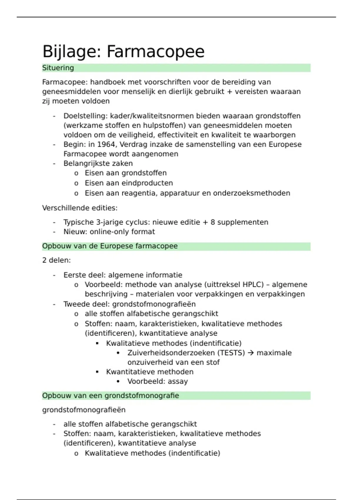 samenvatting bijlage farmacopee (UCLL-instrumentele technieken)