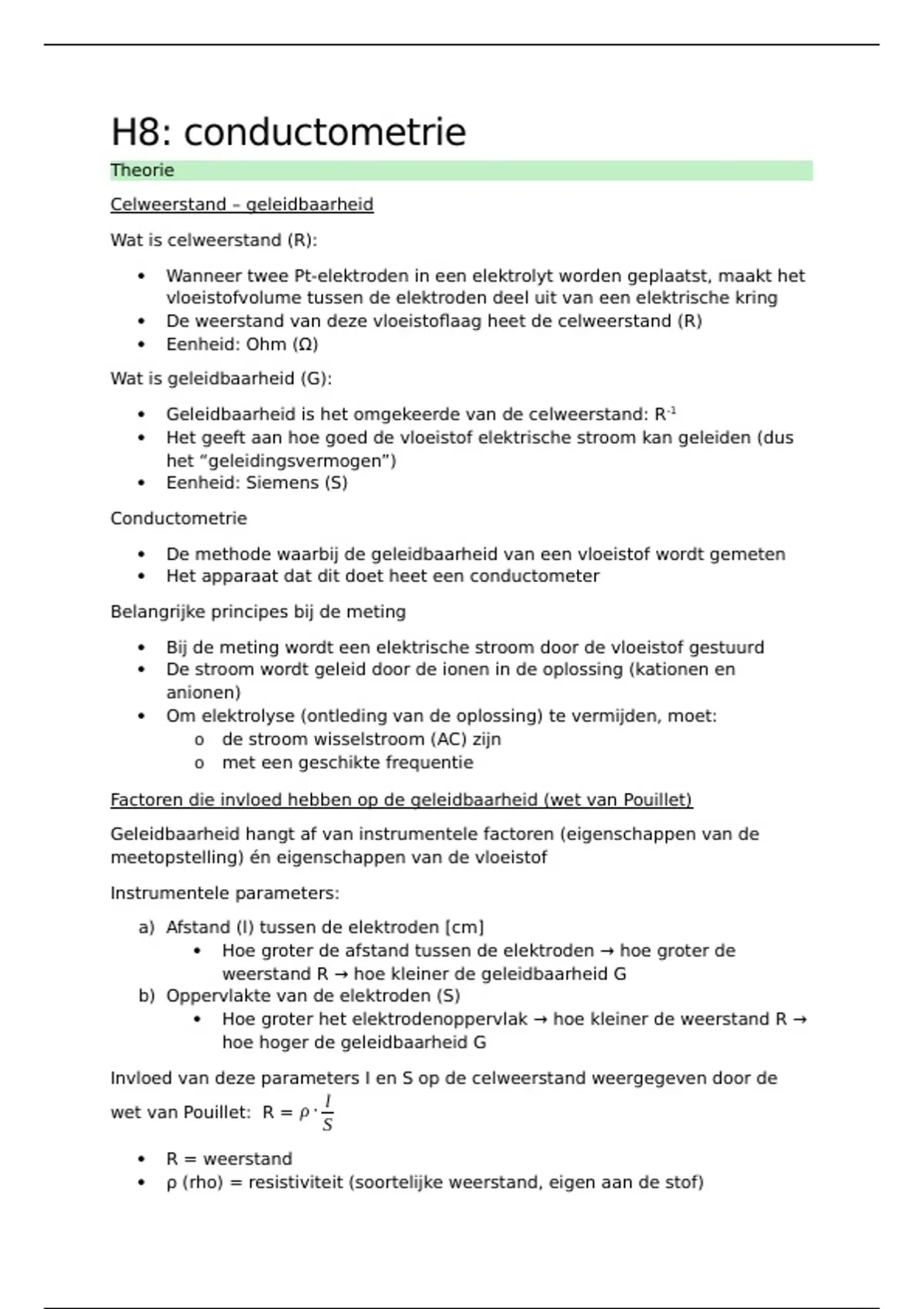 samenvatting over H8: conductometrie (UCLL- instrumentele technieken)