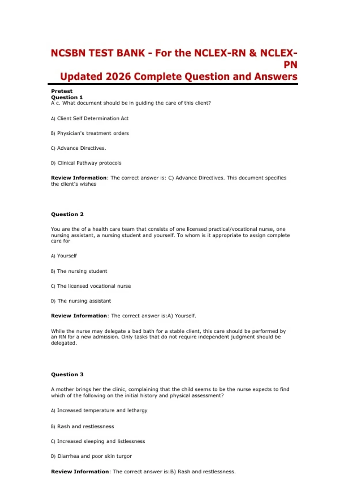 NCSBN TEST BANK - For the NCLEX-RN & NCLEX-