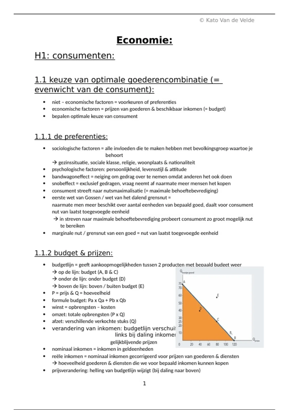 1.1 keuze van optimale goederencombinatie (=