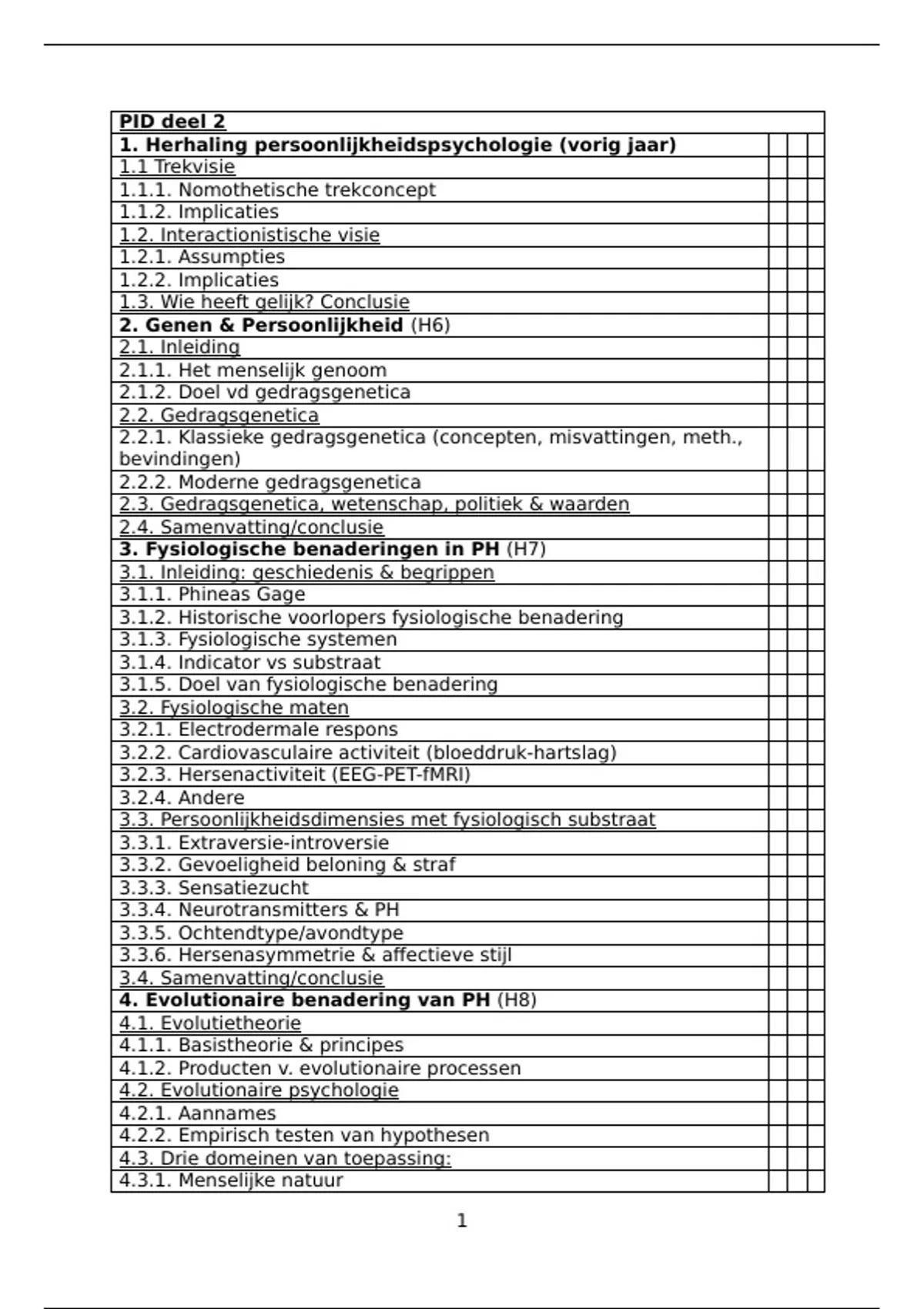 1. Herhaling persoonlijkheidspsychologie (vorig jaar)