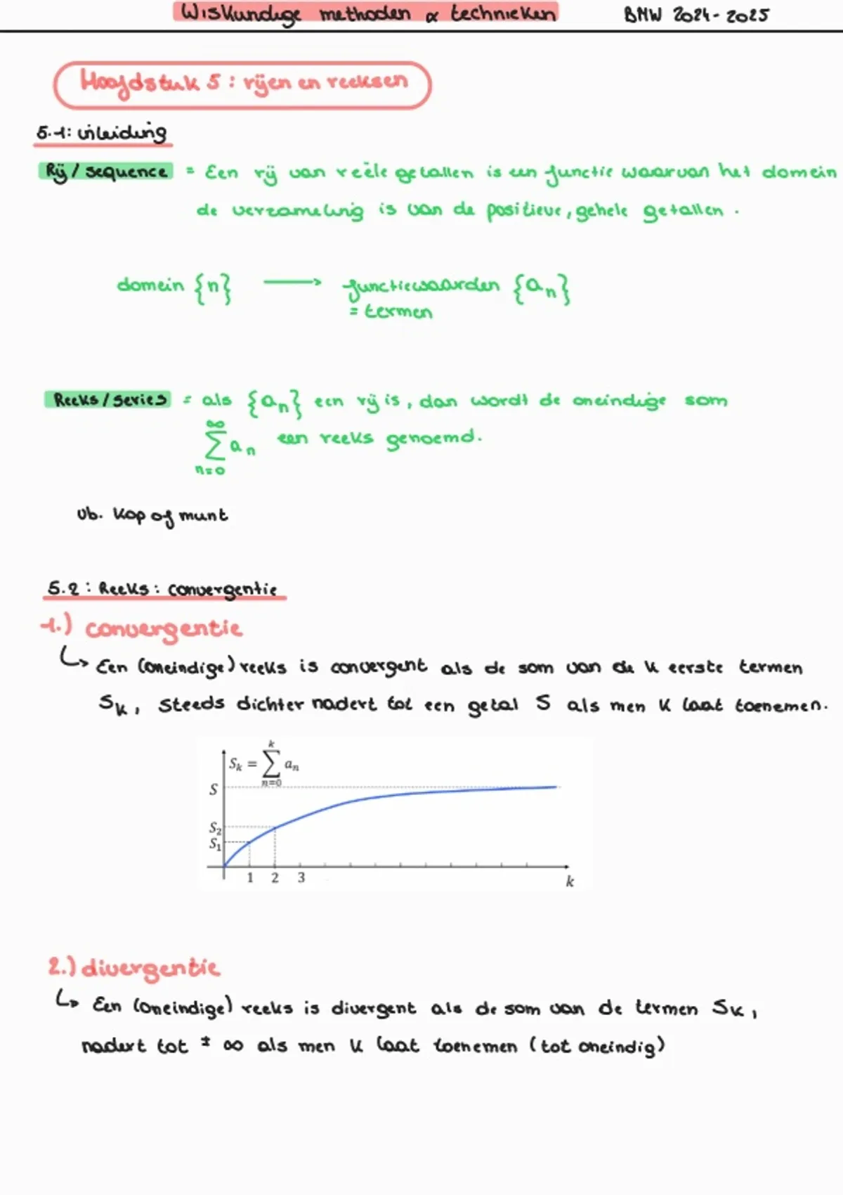 Samenvatting - Wiskundige methoden en technieken; H5 Rijen en reeksen