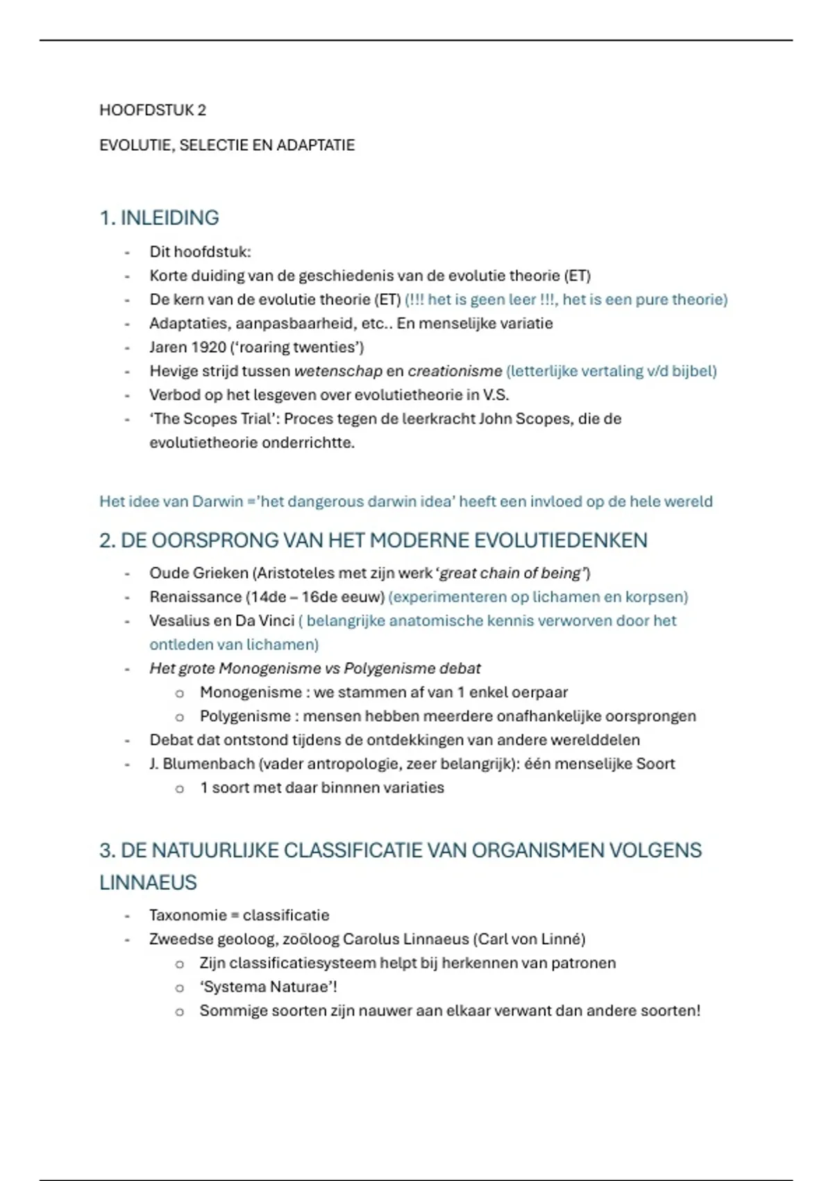 - Korte duiding van de geschiedenis van de evolutie theorie (ET)