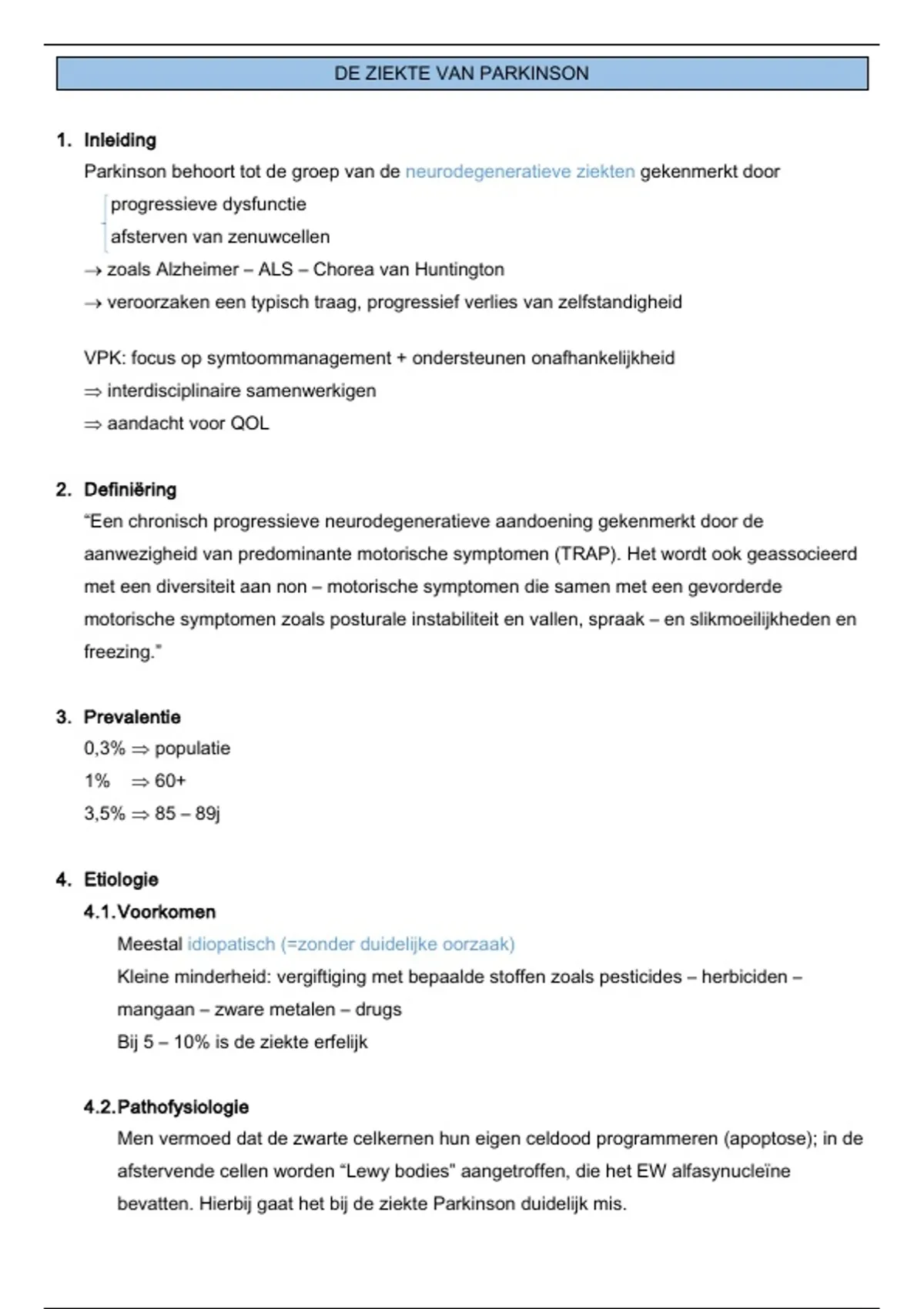 DE ZIEKTE VAN PARKINSON