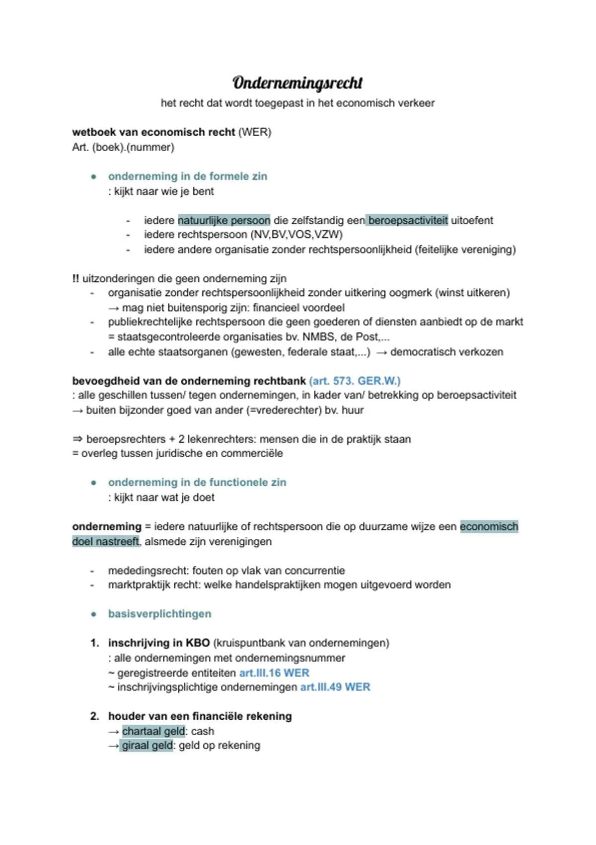 ondernemingsrecht ⇐⇒ vennootschapsrecht