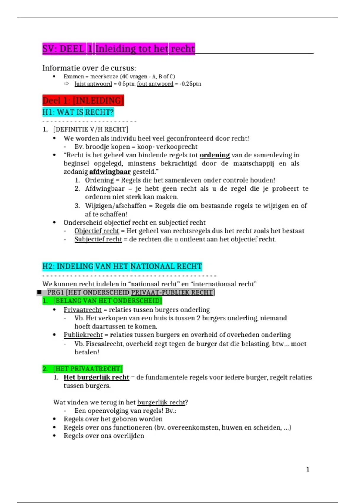SV: DEEL 1 Inleiding tot het recht