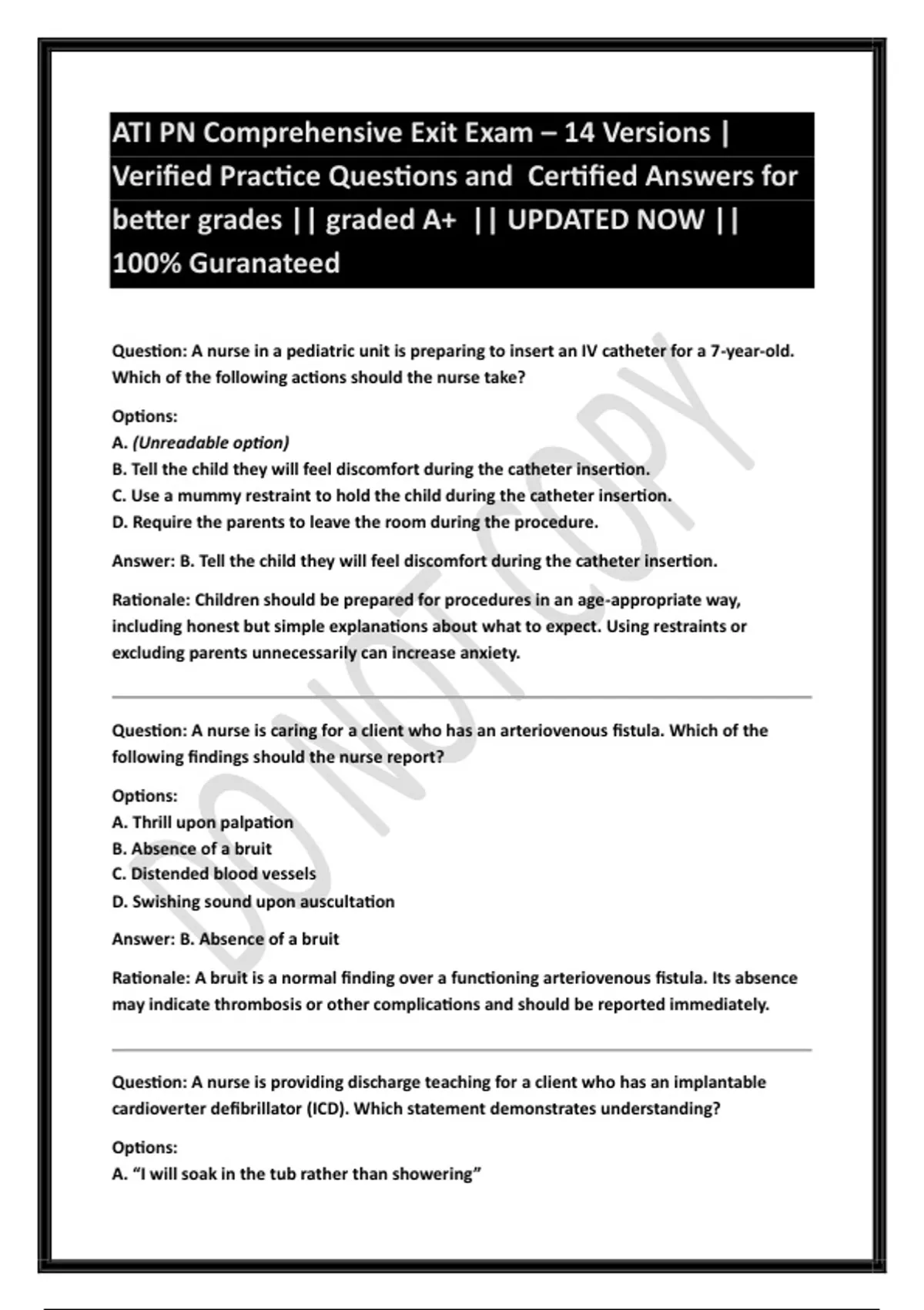 ATI PN Comprehensive Exit Exam – 14 Versions | Verified Practice Questions and Certified Answers for better grades || graded A+ || UPDATED NOW || 100% GuranateedATI PN Comprehensive Exit Exam – 14 Versions | Verified Practice Questions and Certified Answers for better grades || graded A+ || UPDATED NOW || 100% Guranateed