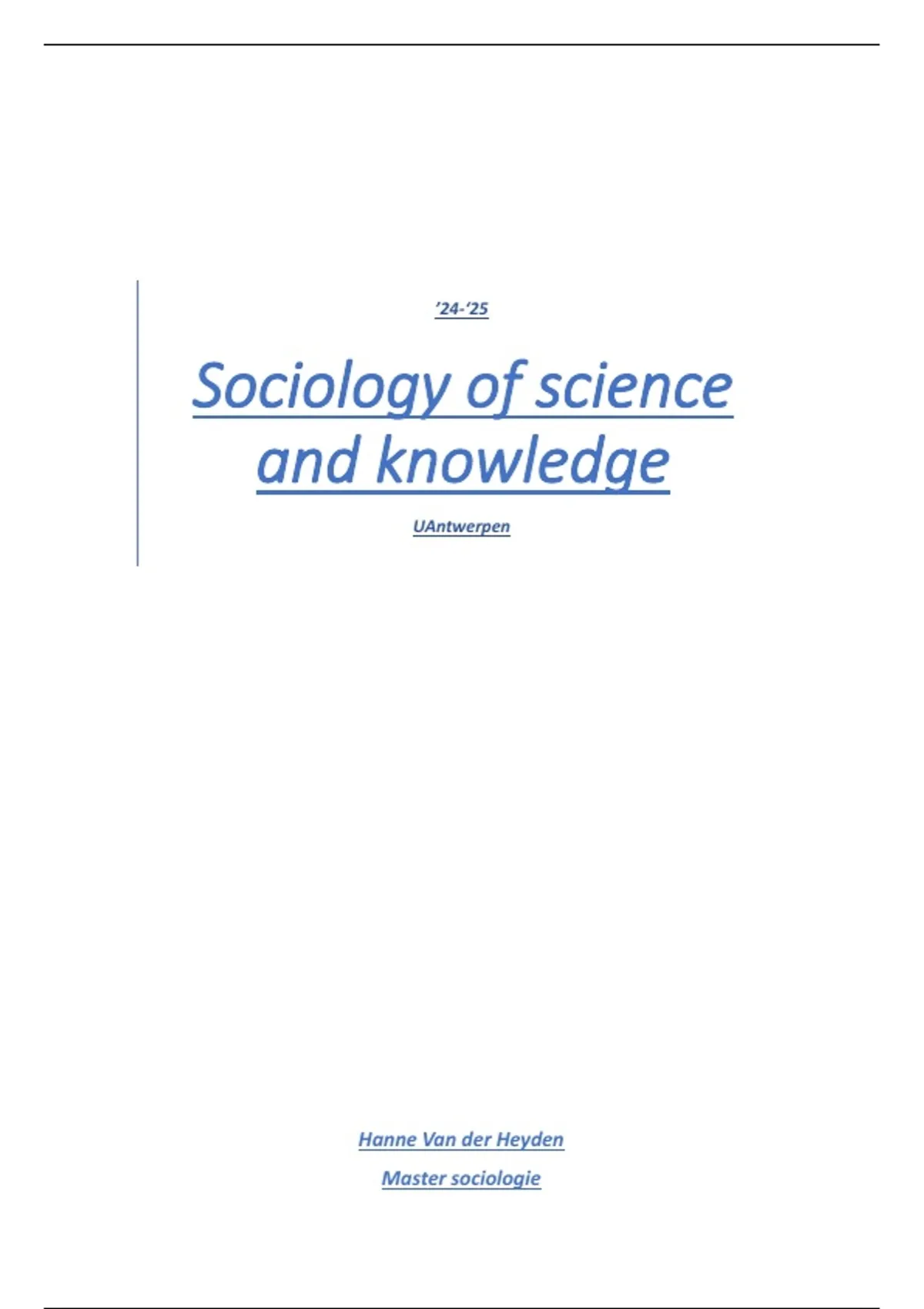 Samenvatting Sociology of Science and Knowledge (15/20)