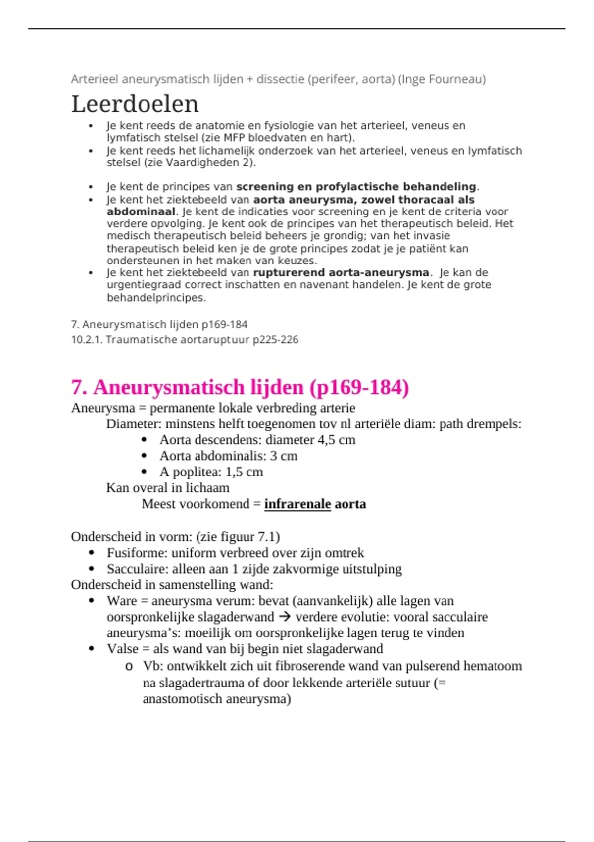 Arterieel aneurysmatisch lijden + dissectie (perifeer, aorta) (Inge Fourneau)