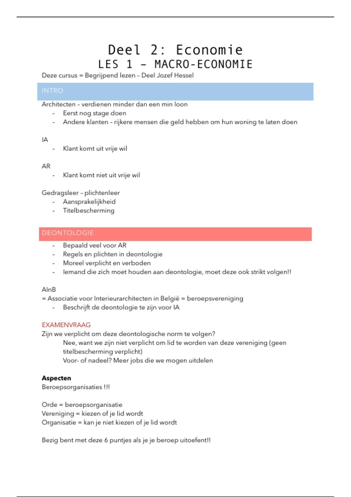 Samenvatting van de les Management onderdeel economie door Jozef Hessel