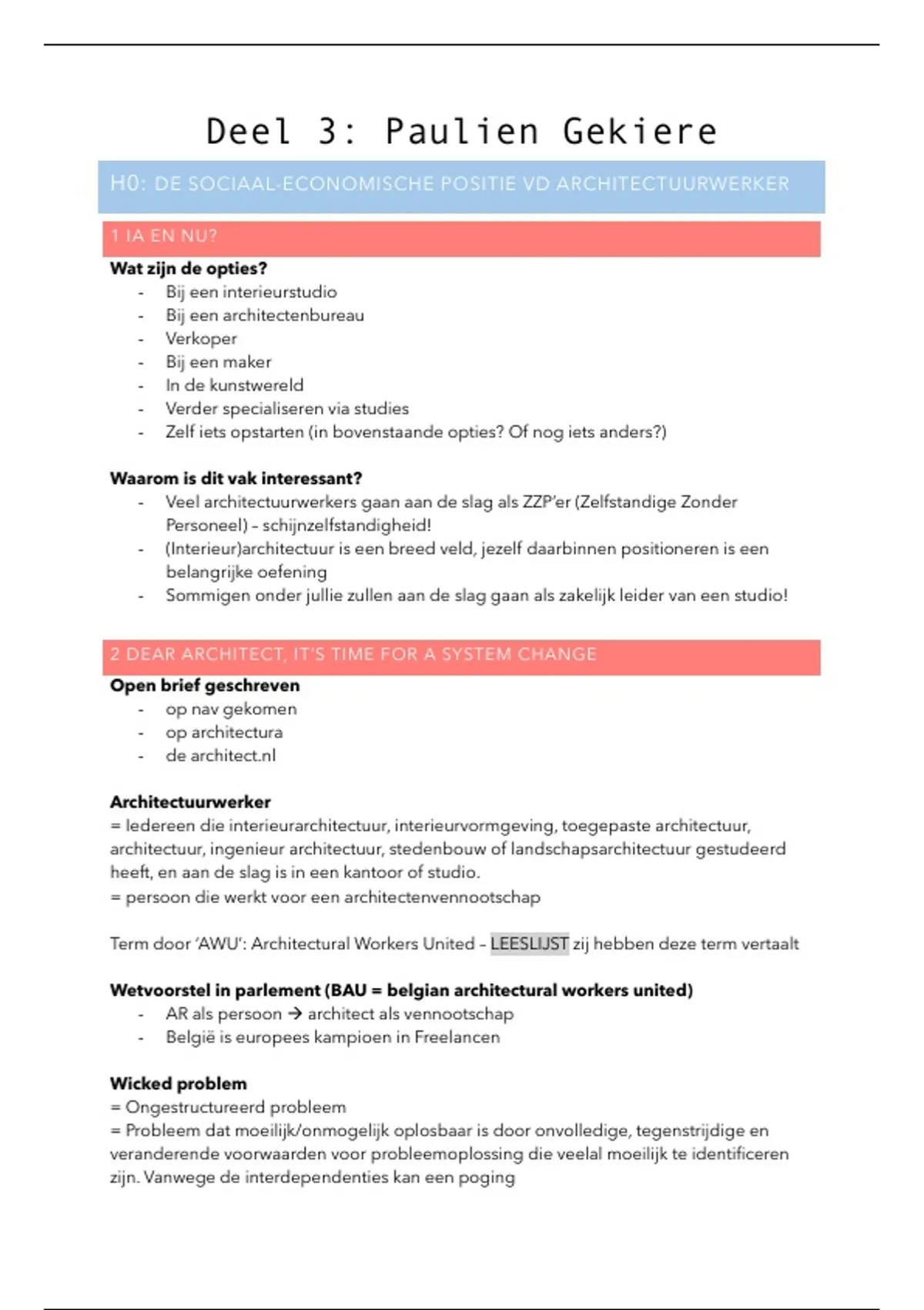 H0: DE SOCIAAL-ECONOMISCHE POSITIE VD ARCHITECTUURWERKER