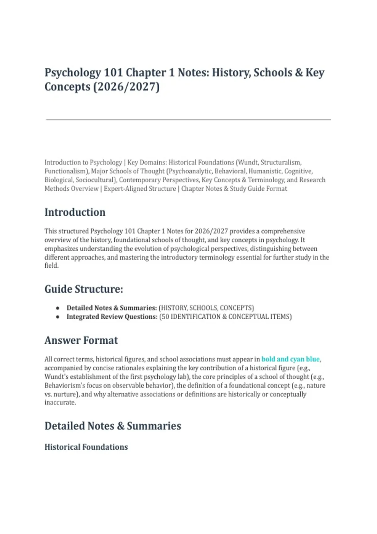 This structured Psychology 101 Chapter 1 Notes for 2026/2027 provides a comprehensive