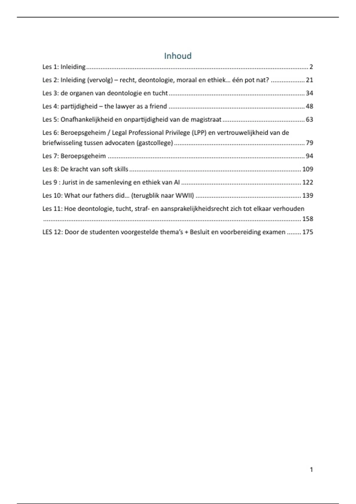 briefwisseling tussen advocaten (gastcollege) ......................................................................... 79