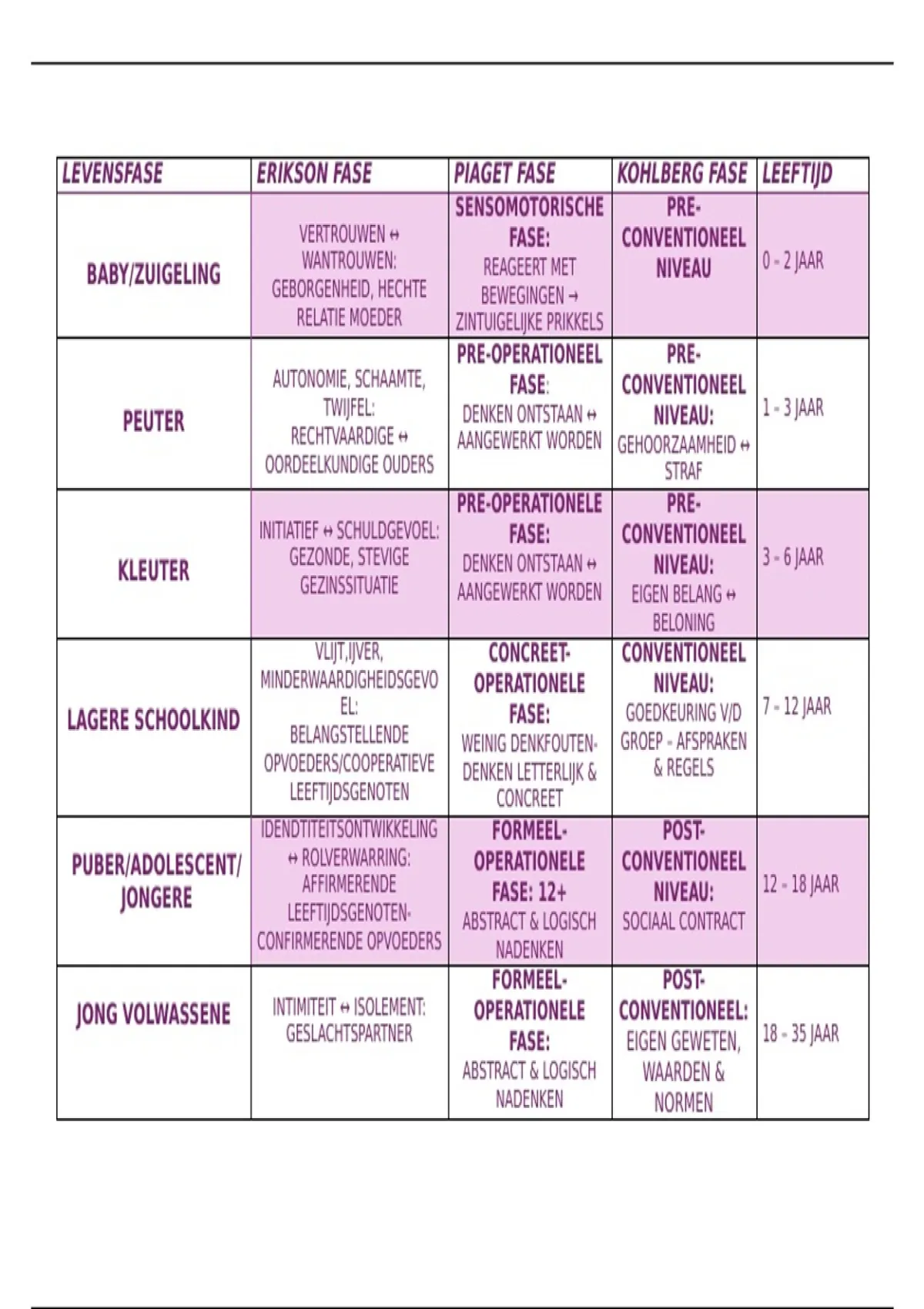 LEVENSFASE ERIKSON FASE PIAGET FASE KOHLBERG FASE LEEFTIJD