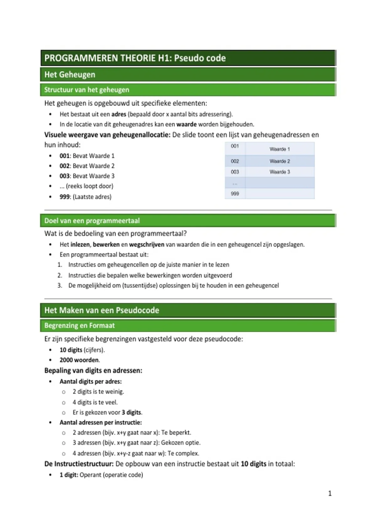 PROGRAMMEREN THEORIE H1: Pseudo code