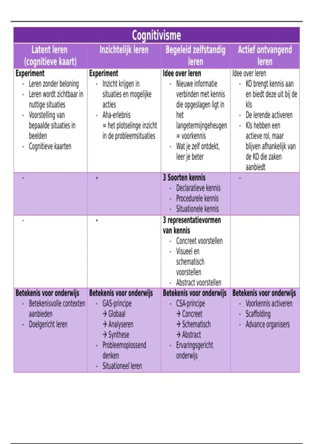 In dit document vind je een overzichtelijk schema met de belangrijkste zaken uit het cognitivisme. Dit geldt voor de informatie uit de opleiding kleuteronderwijs, OF2, SEM3 vak groot worden in denken te Diest.