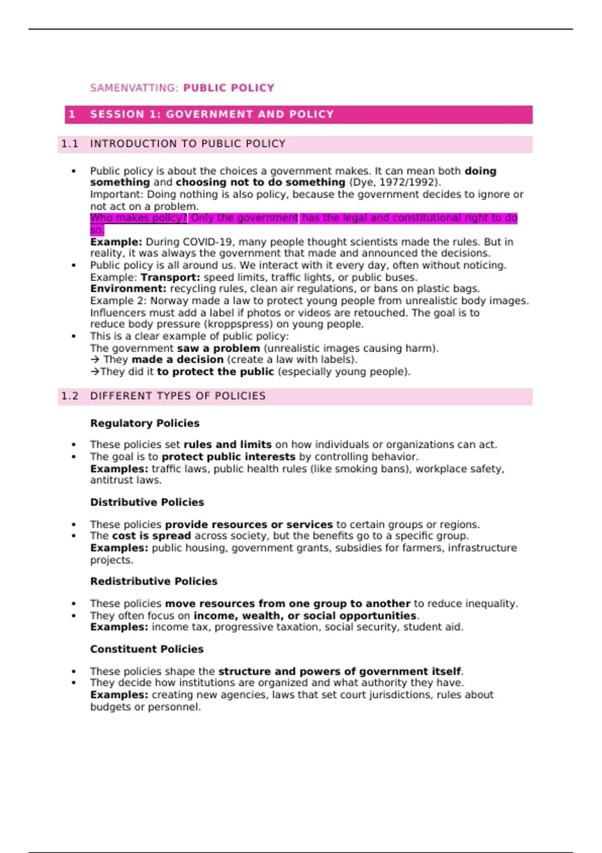 SAMENVATTING: PUBLIC POLICY