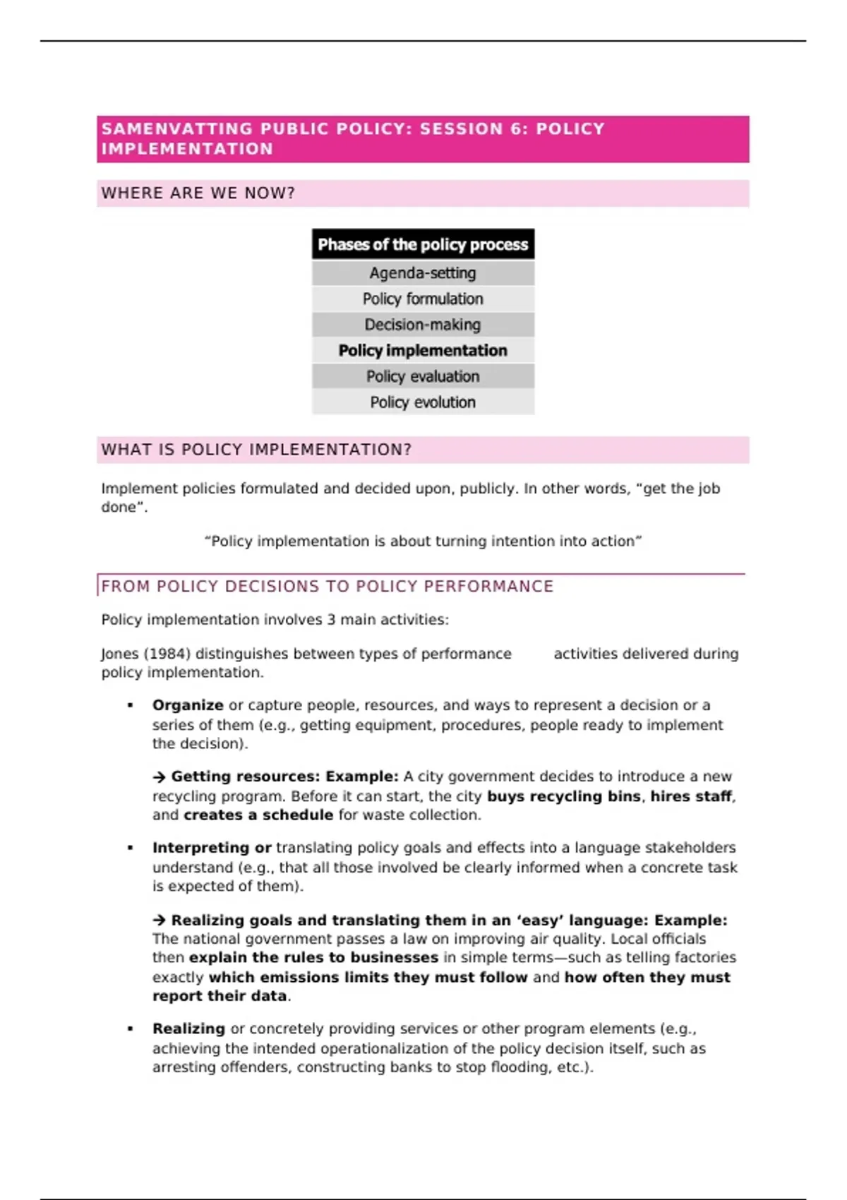 SAMENVATTING PUBLIC POLICY: SESSION 6: POLICY