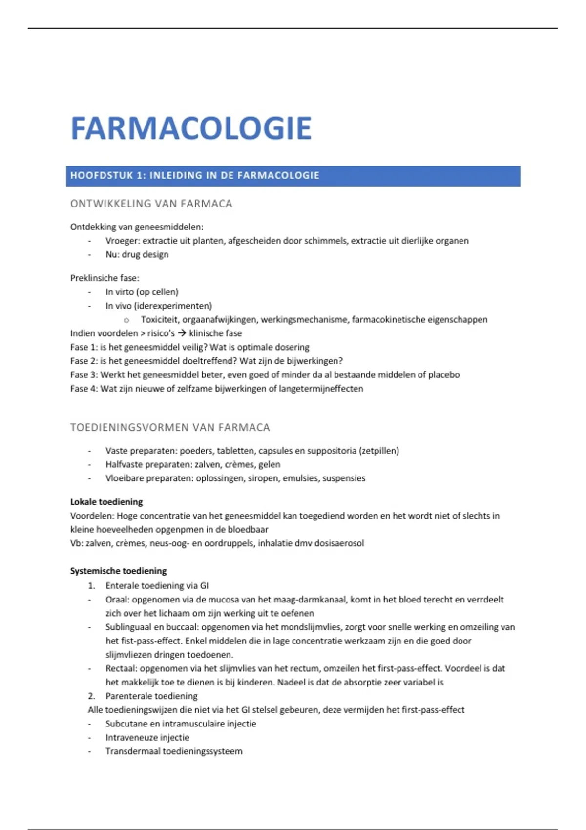 HOOFDSTUK 1: INLEIDING IN DE FARMACOLOGIE