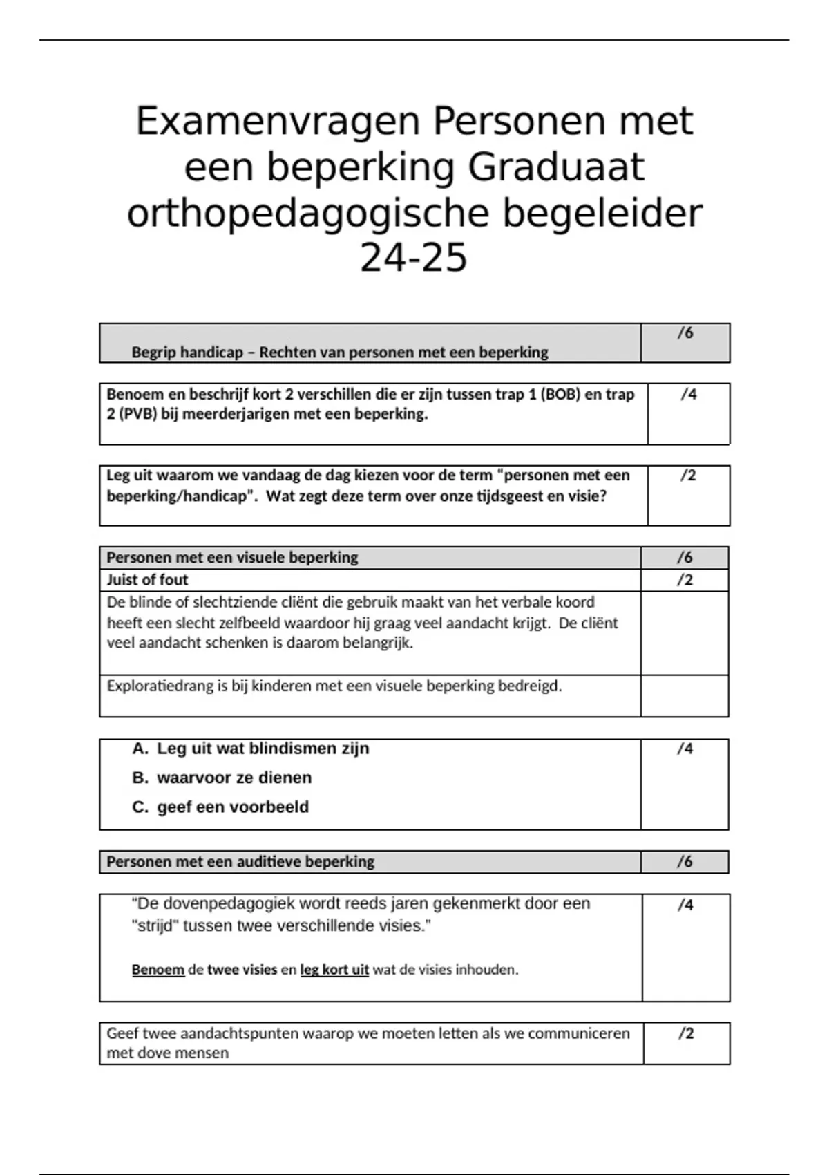 Examen vragen Personen met een beperking