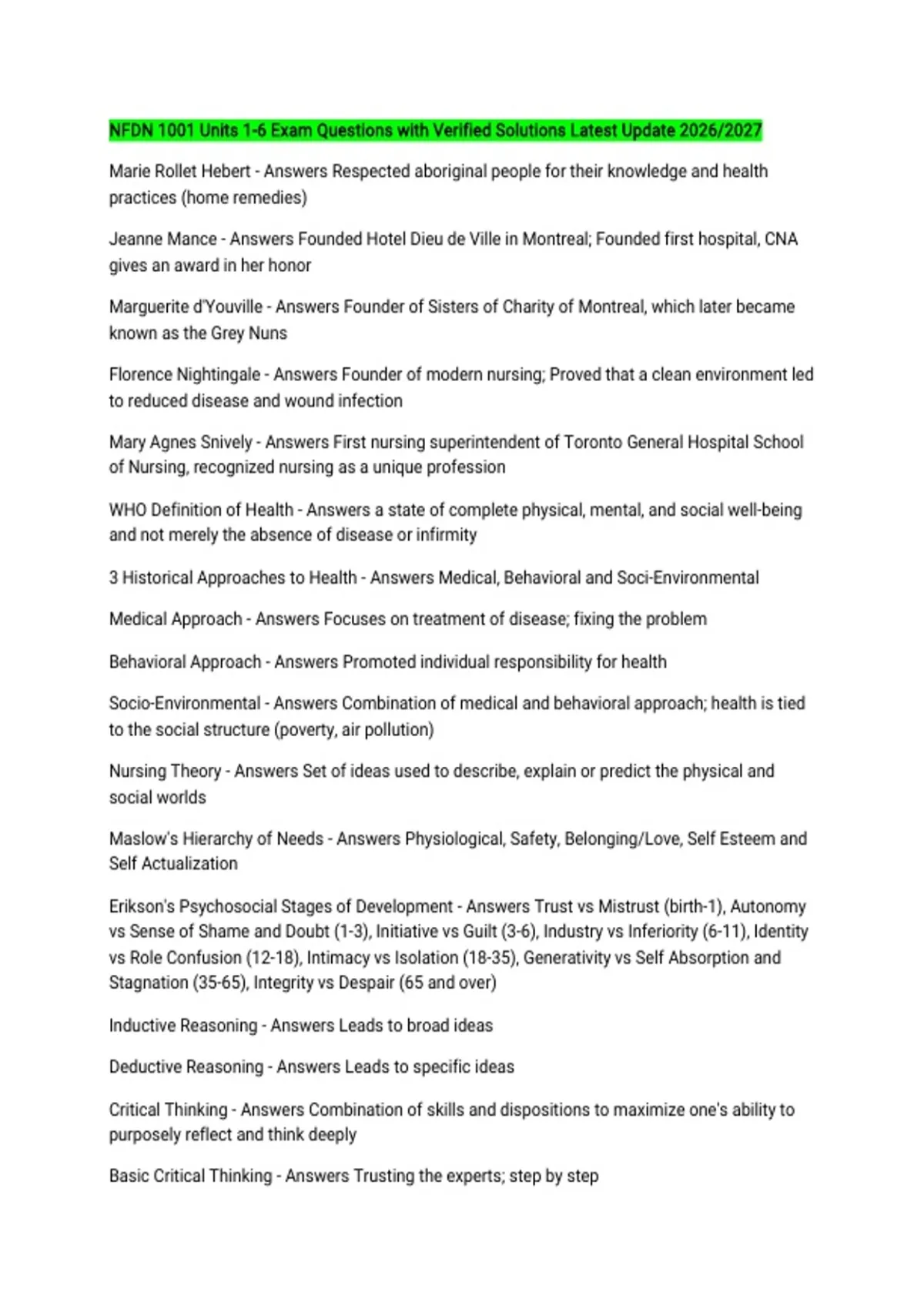 WHO Definition of Health - Answers a state of complete physical, mental, and social well-being