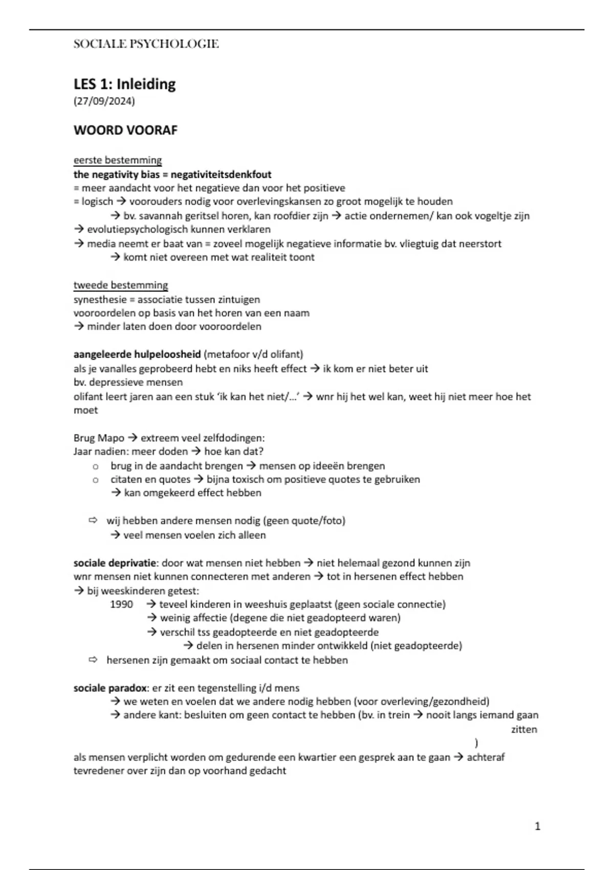Dit is een samenvatting van alle hoorcolleges van Sociale Psychologie + de extra uitleg die tijdens de hoorcolleges wordt gegeven. Zelf behaalde ik een 16/20.
