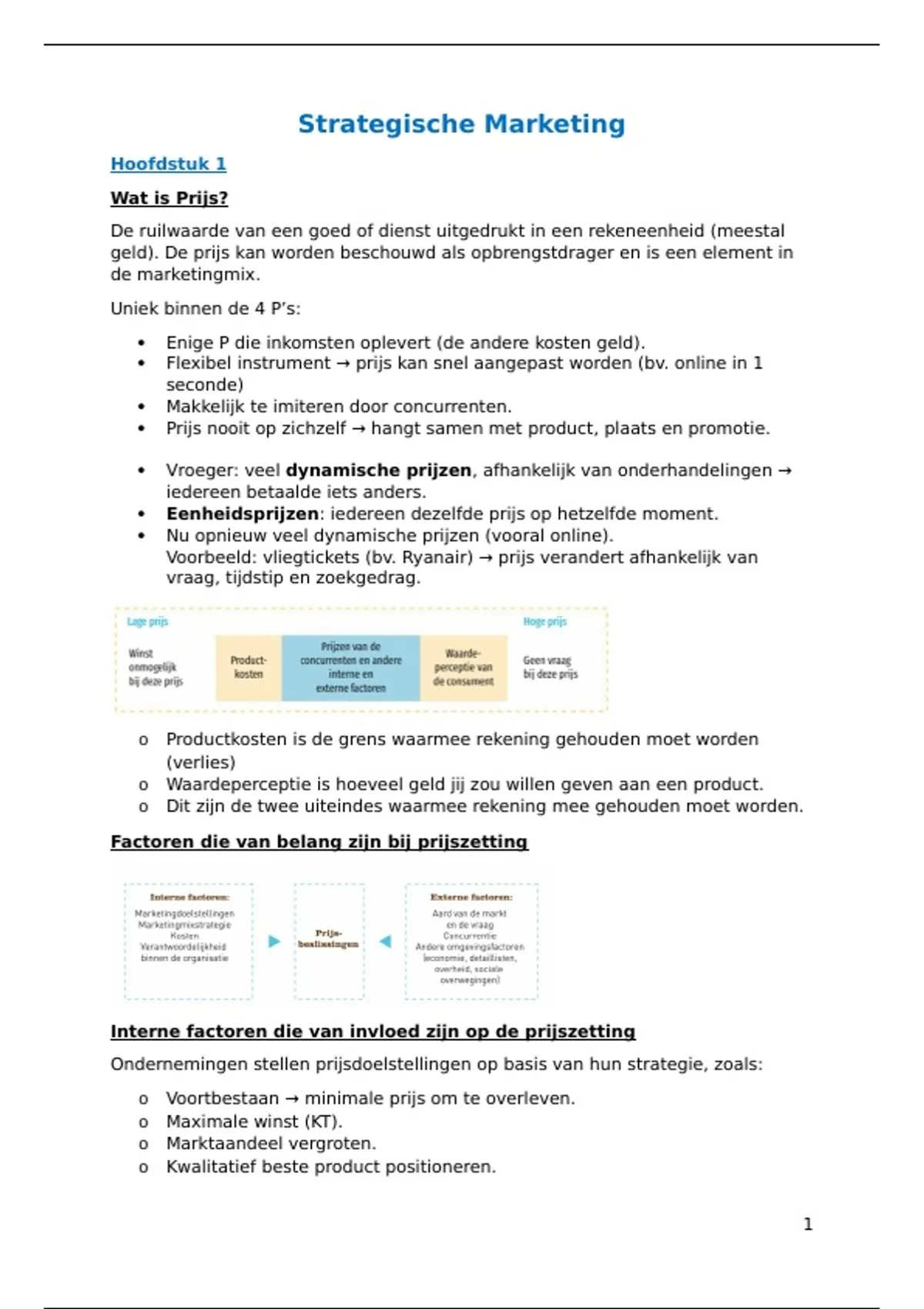 Interne factoren die van invloed zijn op de prijszetting