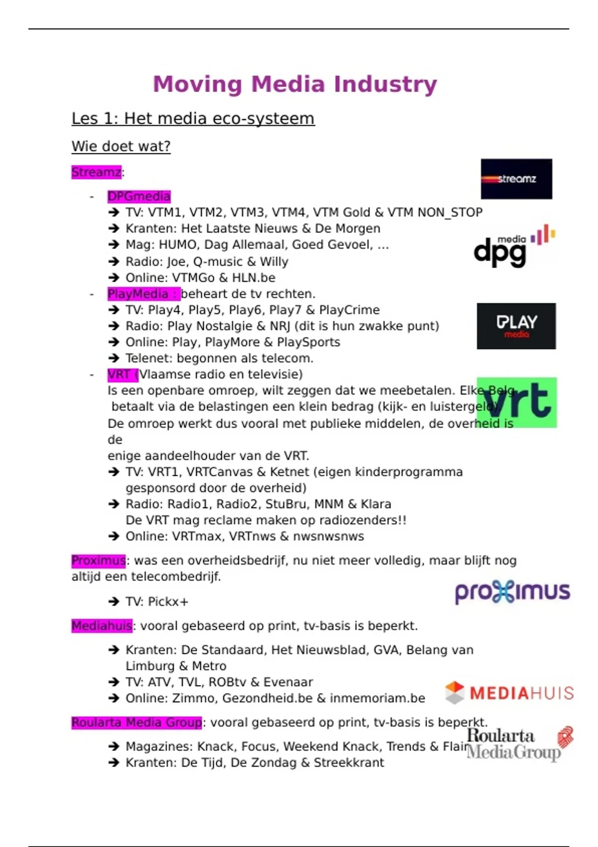 Samenvatting Moving Media Industry 1ste jaar