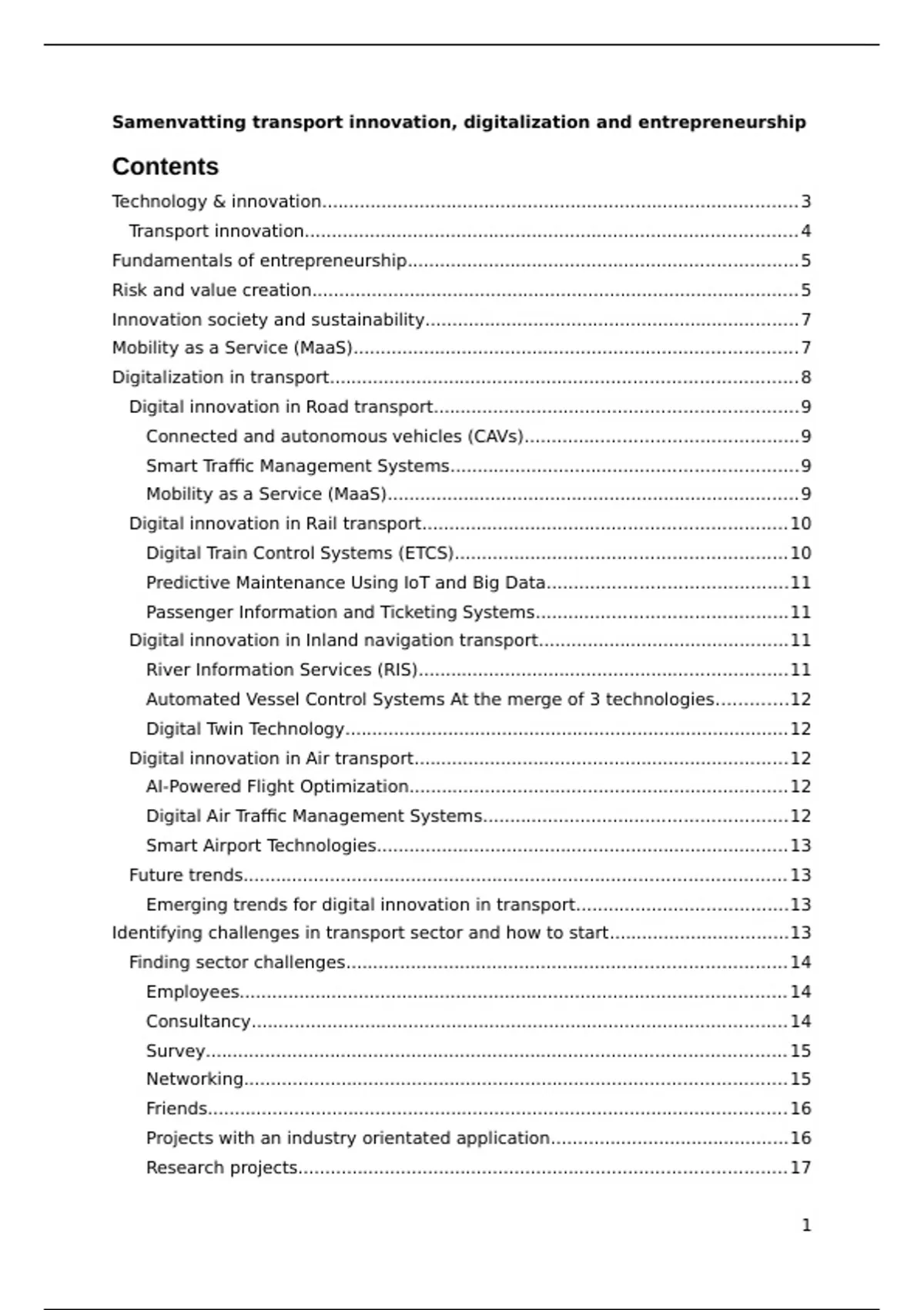 Samenvatting - Transport innovation, digitalisation & entrepeneurship