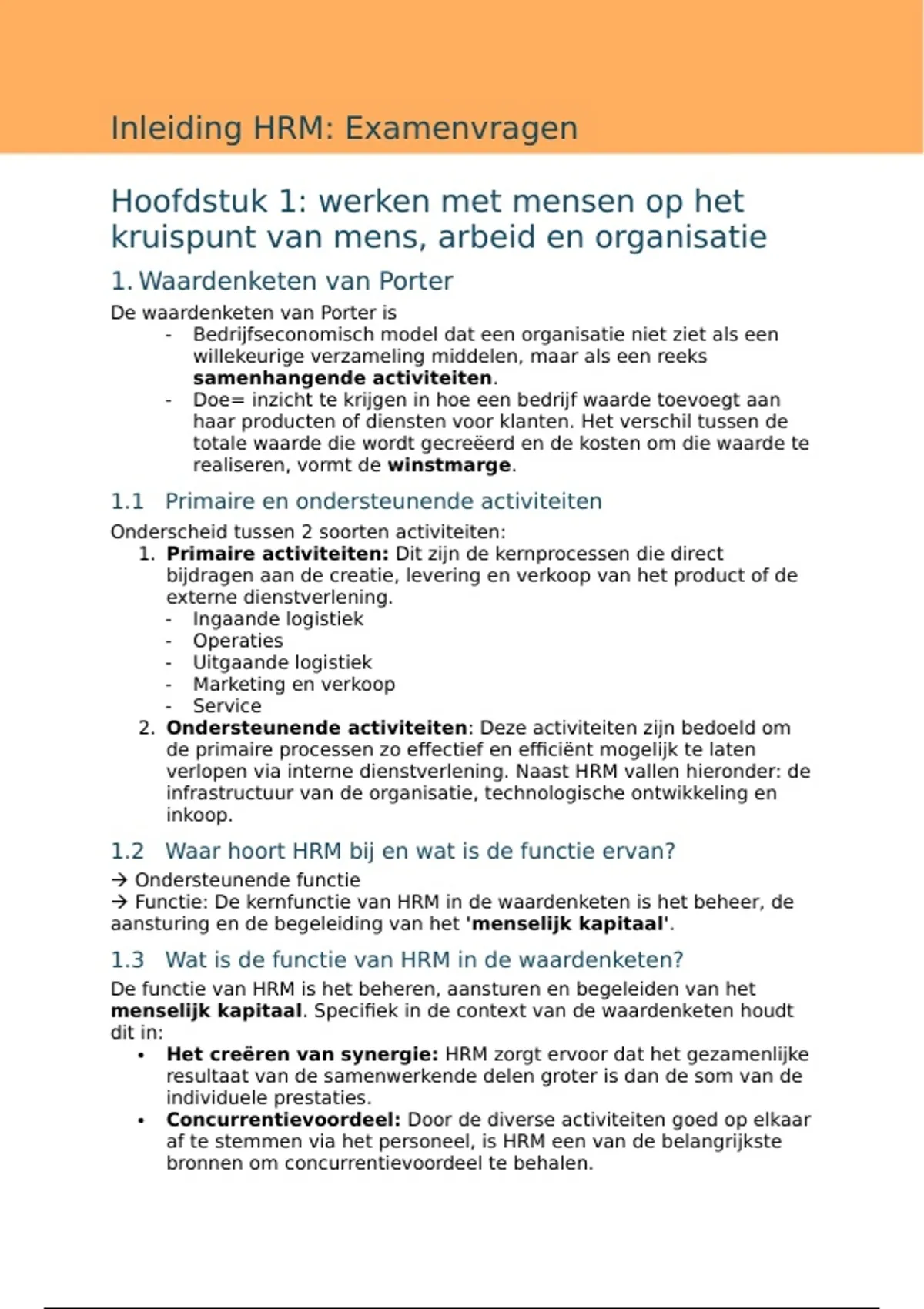 1.3 Wat is de functie van HRM in de waardenketen?