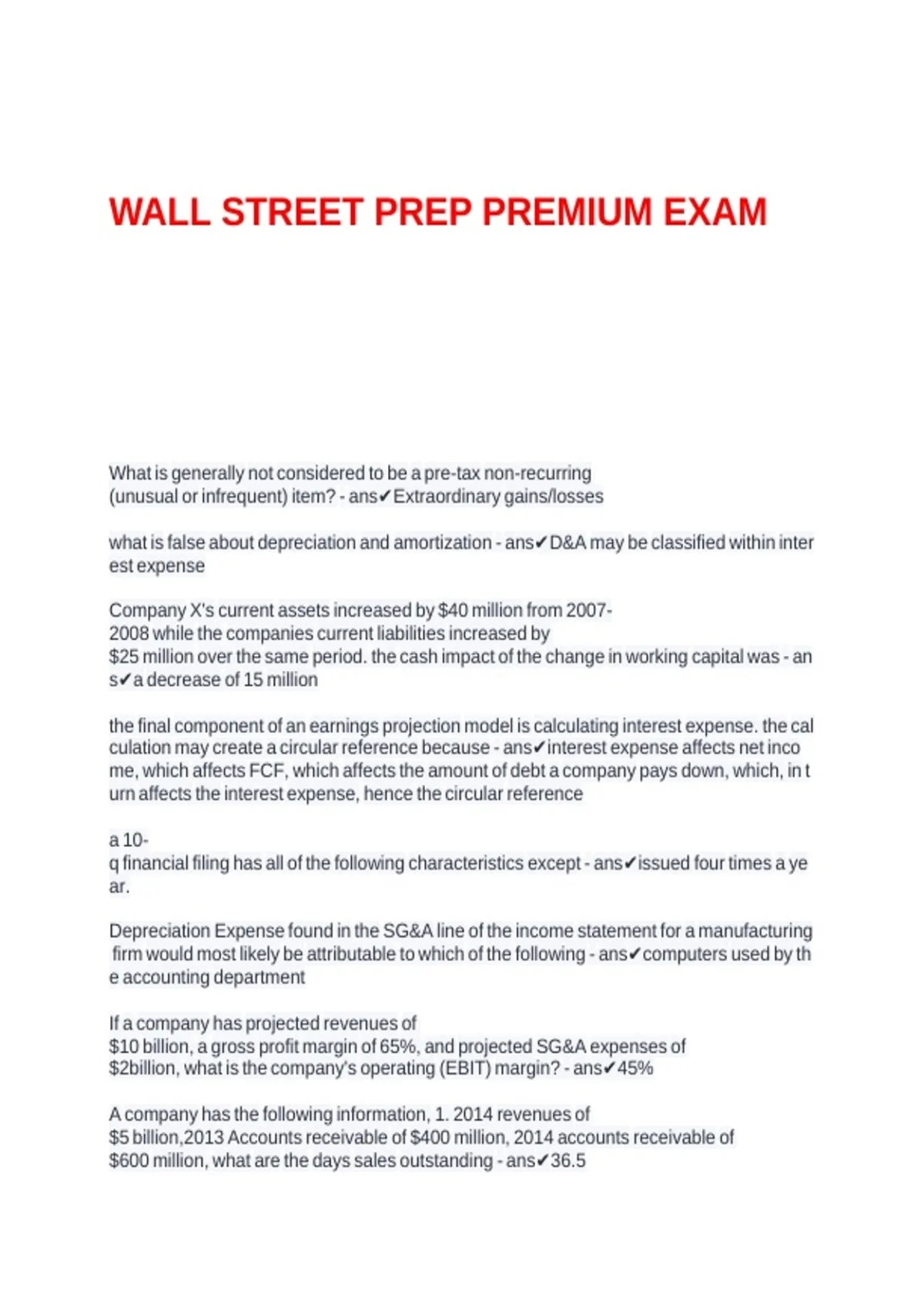 WALL STREET PREP PREMIUM EXAM1