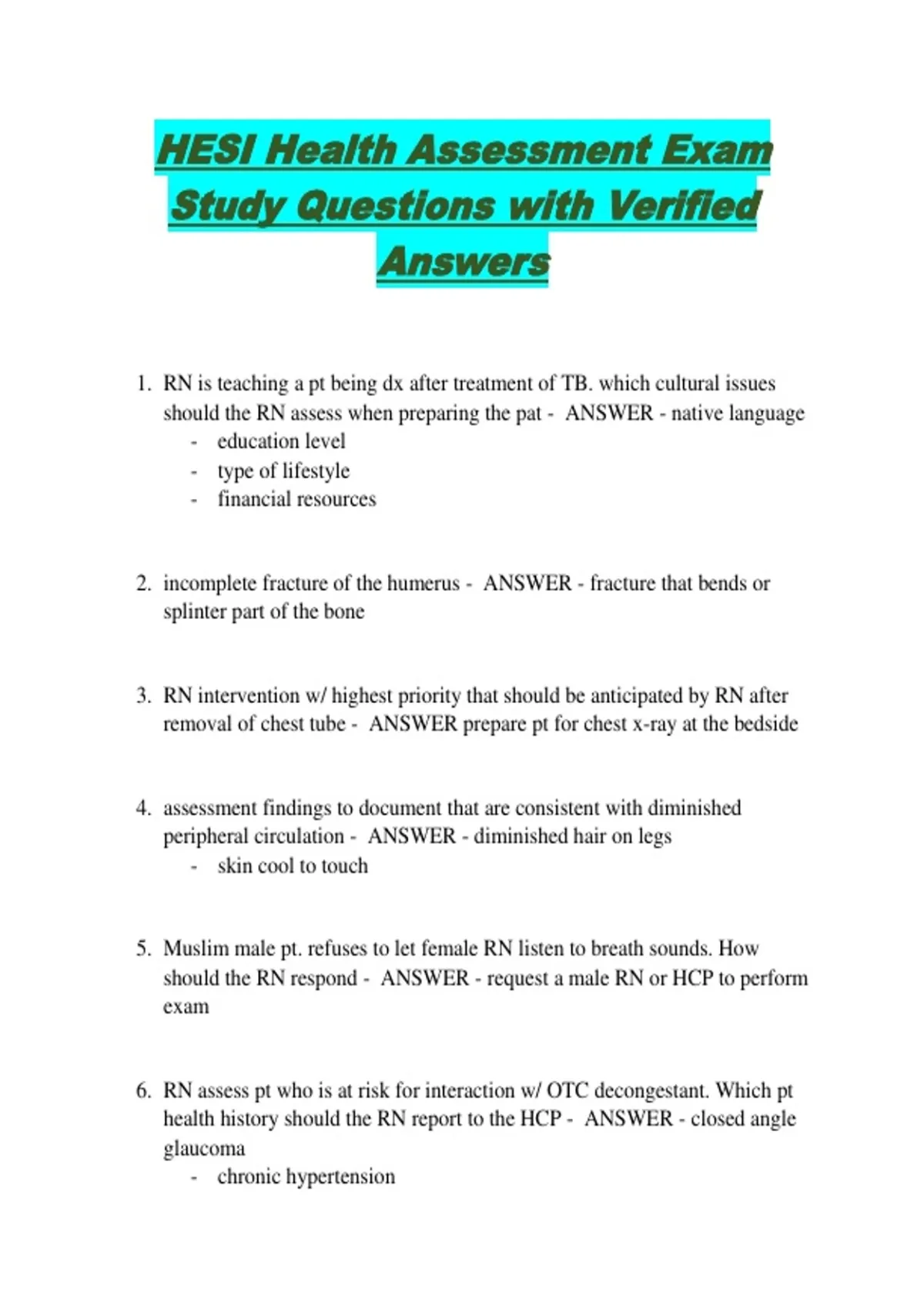 HESI Health Assessment Exam Study Questions with Verified Answers